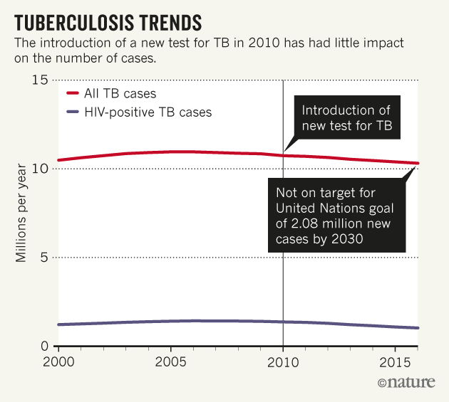 While the test is rapid, accurate and much superior to what we have been using for decades, pragmatic randomized trials have shown disappointing results on improvements in long-term outcomes such as reduction in mortality and reduction in TB incidence. This has prompted media headlines that read “Improved diagnostics fail to halt the rise of tuberculosis (graphic below).”