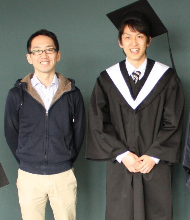 Norikazu Ichihashi (left) and Ryo Mizuuchi (right). On graduation day from Osaka University.