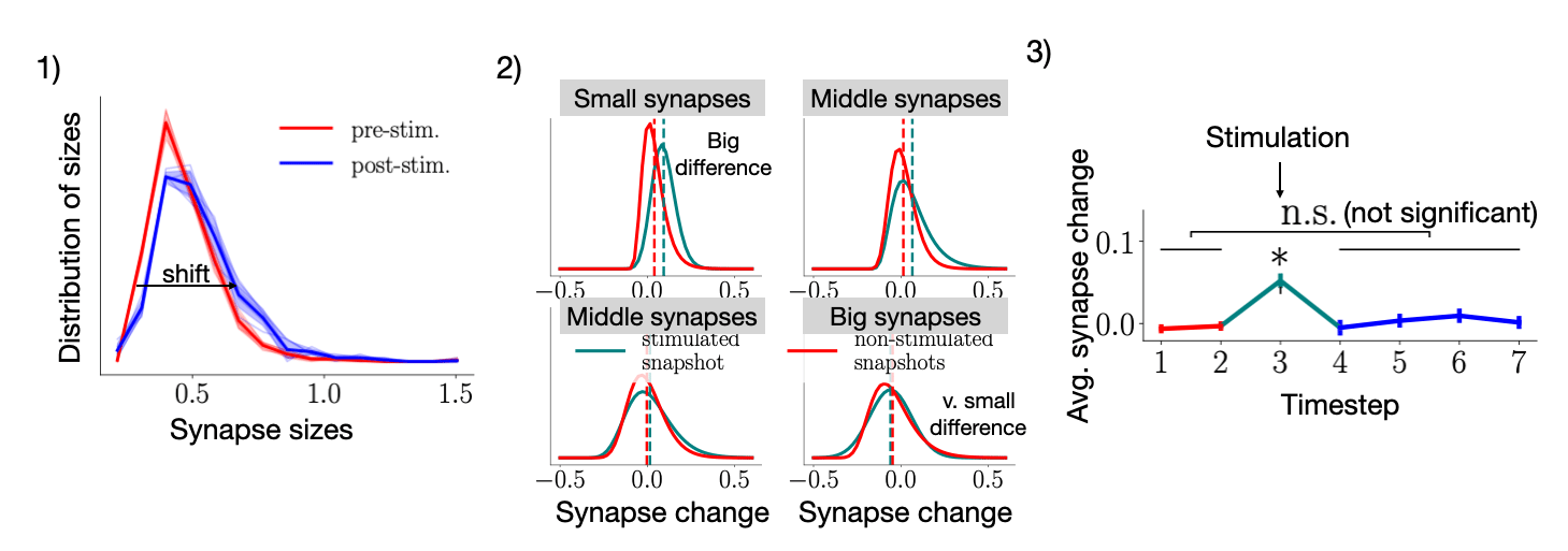 To better understand the difference between stimulation-triggered and spontaneous changes, we performed experiments where we studied synapses of a neuron (without providing any stimulus) for roughly an hour. After this period, we noted (and confirmed from previous studies1,6-8) some interesting observations.