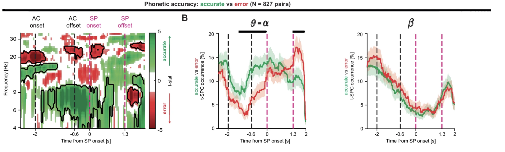 We found these critical interactions specifically occurred within the theta-alpha frequency (4-12 Hz) band—rhythms associated with communication and cognitive processes. Importantly, these brief moments of neural synchronization (lasting only around 200 milliseconds) were closely tied to successful speech sounds.
