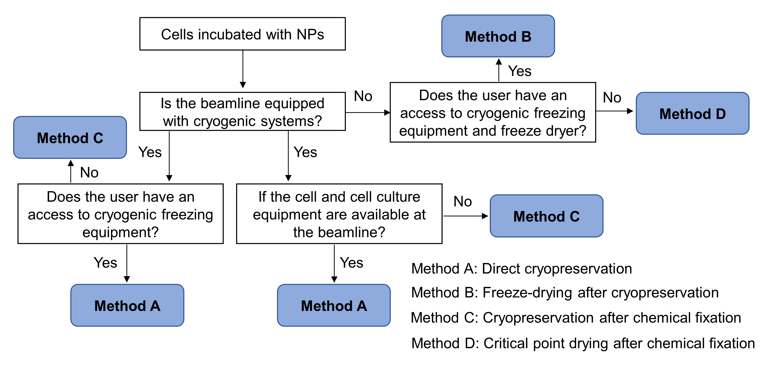 Fig. 3. A decision-making flow chart for preservation of cell-NPs samples, based on the imaging conditions of the beamlines and different users’ demands