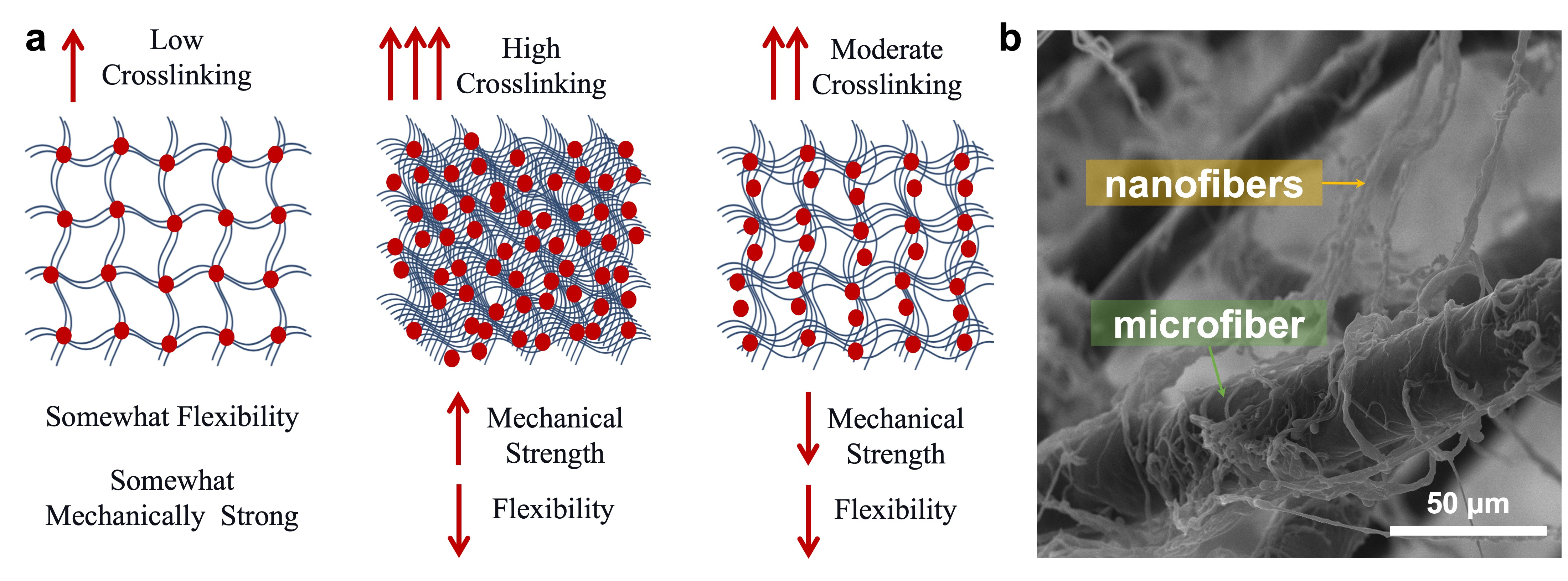 Conventional approaches to enhance mechanical properties, often involving increased crosslinking density, tend to worsen brittleness, thereby restricting their suitability for dynamic soft tissues (Figure 1a).