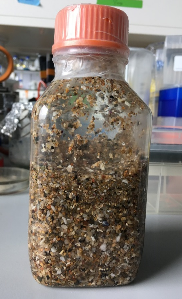 With this in mind, Detmer and his PhD student Johanna Gutleben started collecting marine sediments in the vicinity of sponges that are known sources of organohalogens, and hence likely to harbor OHRB. Rather than marine sediments, the first batch of samples turned out to be intertidal shore sands from Spain, because the sponge sampling site was too rocky to collect any sediment.