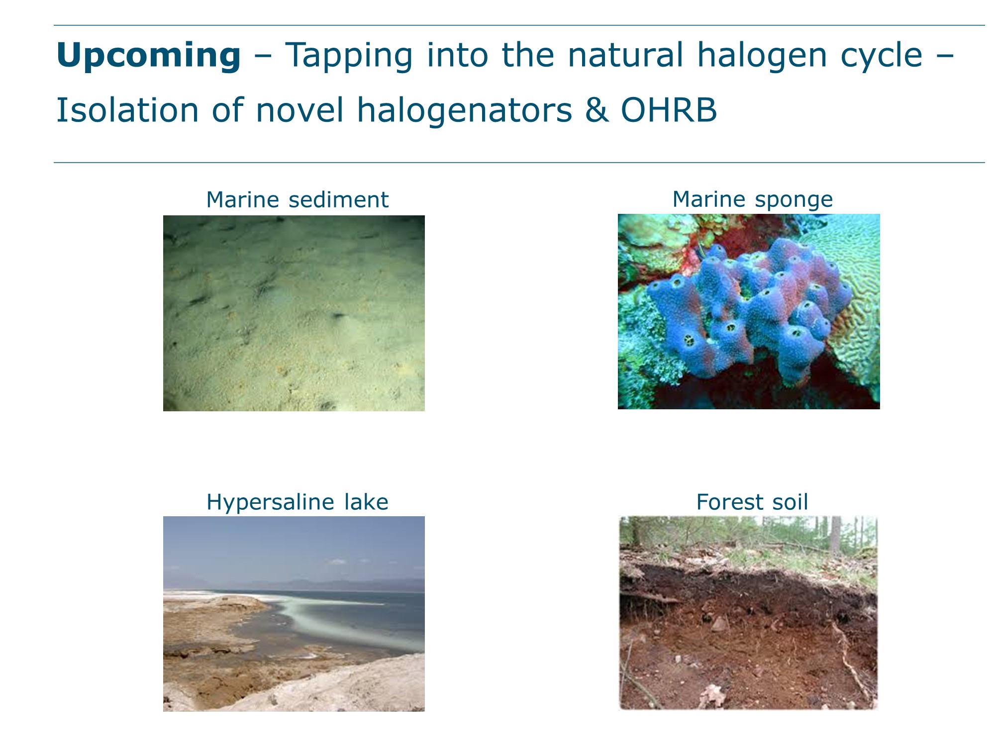 In 2013, Hauke Smidt, Detmer Sipkema, and me initiated a research line: “Tapping into the natural halogen cycle”. This was a complementary team considering the interest of Hauke and me on microbial dehalogenation, and Detmer on microbial halogenation. We presented the slide below in December 2014 at the strategic meeting of the Laboratory of Microbiology at Wageningen University & Research: our plans for upcoming years.