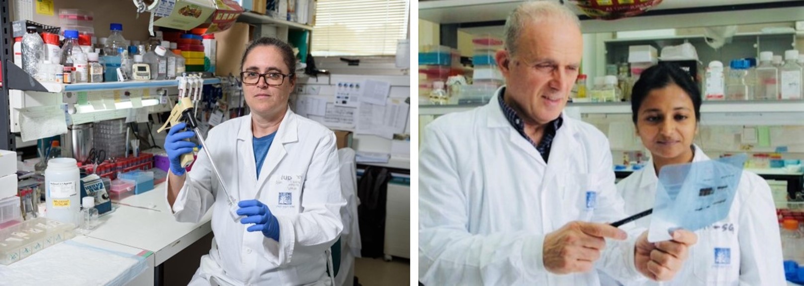 From left to right: Dr. Moshit Lindzen, first author, Prof. Yosef Yarden and Dr. Soma Ghosh.