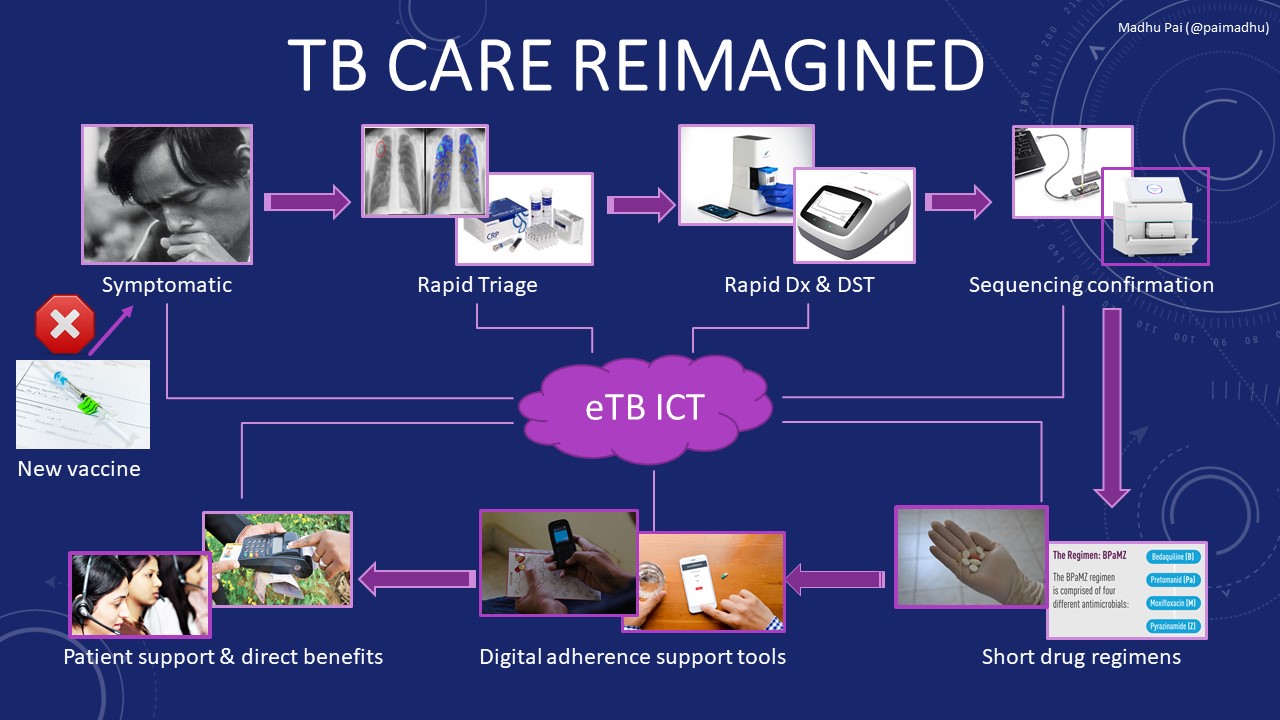 Is this modern TB service an unrealistic dream? I don’t think so. As I have argued earlier, many such tools and solutions already exist, in some form or fashion (all the images I have used in the graphic above are real!). They have just failed to come to together to serve those who need them the most. And, for some tools such as a better vaccine and a shorter drug therapy, new investments are urgently needed.