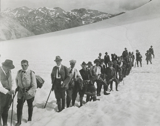 Members of the 3th International Phytosociological Excursions 1923 on the Diavolezza Glacier (which has largely disappeared by now). Among them the summit botanists Josias Braun-Blanquet, Eduard Rübel, Carl Schröter, and Gustaf Einar du Rietz. (ETH Library Zürich, Photo Archive; under public domain mark licence, doi: 10.3932/ethz-a-000073187).