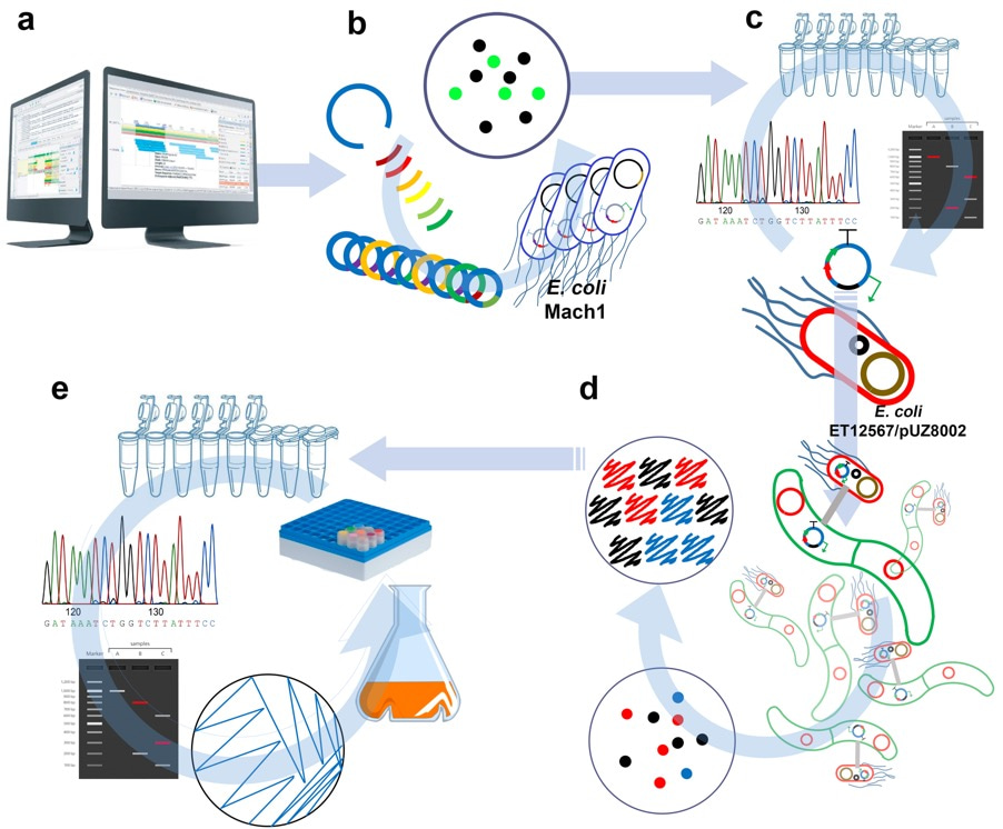 d. transfer the CRISPR plasmid into the target streptomycetes by conjugation.