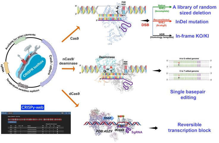https://crispy.secondarymetabolites.org), which supports all the tools mentioned above. It can much facilitate the use of our CRISPR toolkit.