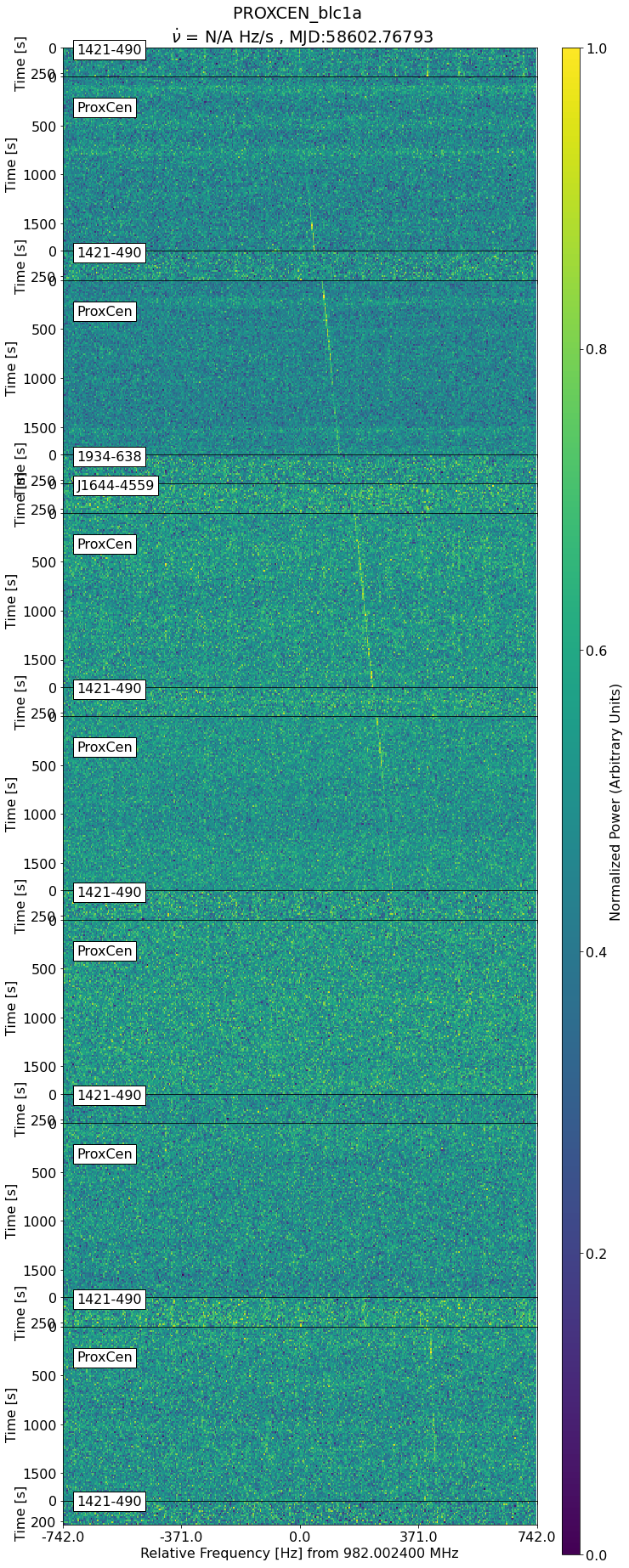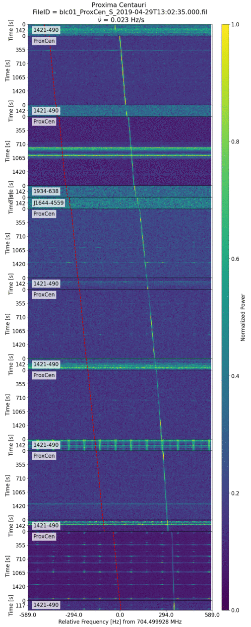 Unfortunately, it's impossible to do the same matching exercise for the "fingerprints" of an extraterrestrial signal, as we don't know what characteristics we would expect from them. However, we can search for "green flags" that match reasonable assumptions. For example, let's assume that there's a transmitter on the surface of ProxCen c, the terrestrial planet in the habitable zone of ProxCen. That transmitter should vanish for a while as its planet rotates it away from us, and its drift rate and frequency should change with the planet's orbit. These are features that we already know (or can infer) from radial velocity exoplanet studies of ProxCen. So we checked for these green flags as well.
