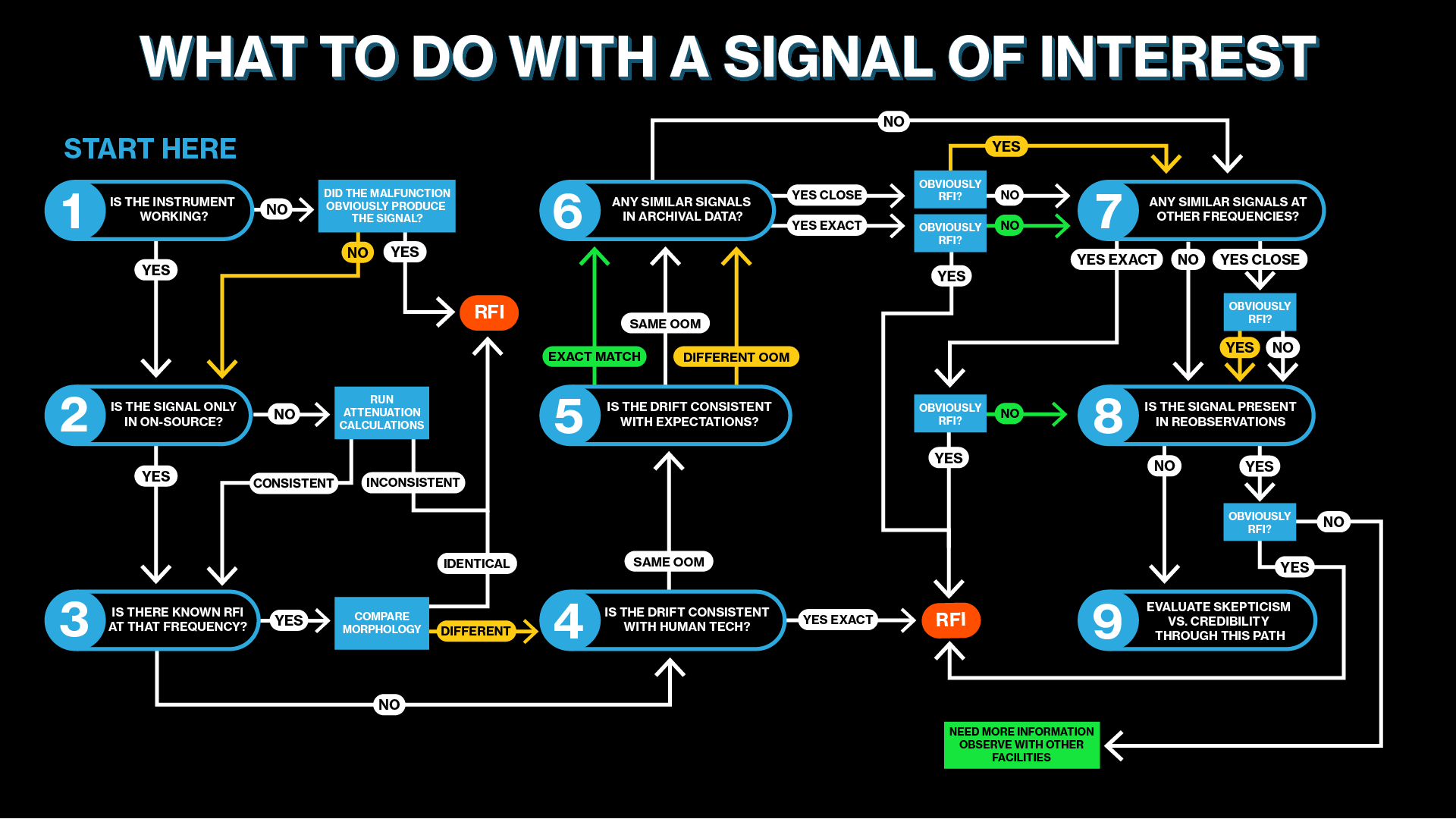 And, if that isn't cool enough on its own, we can use that information to prepare for the next signal-of-interest. There had been a lot of discussion about what to do in theory if a signal passed our initial thresholds, but we'd never had to actually put those discussions into practice before. Now we've developed a procedure for the post-detection of a signal-of-interest (see below), we have developed the code to perform these analyses, and we have considered the best way to balance the timely release of data and code with responsible scientific due diligence.