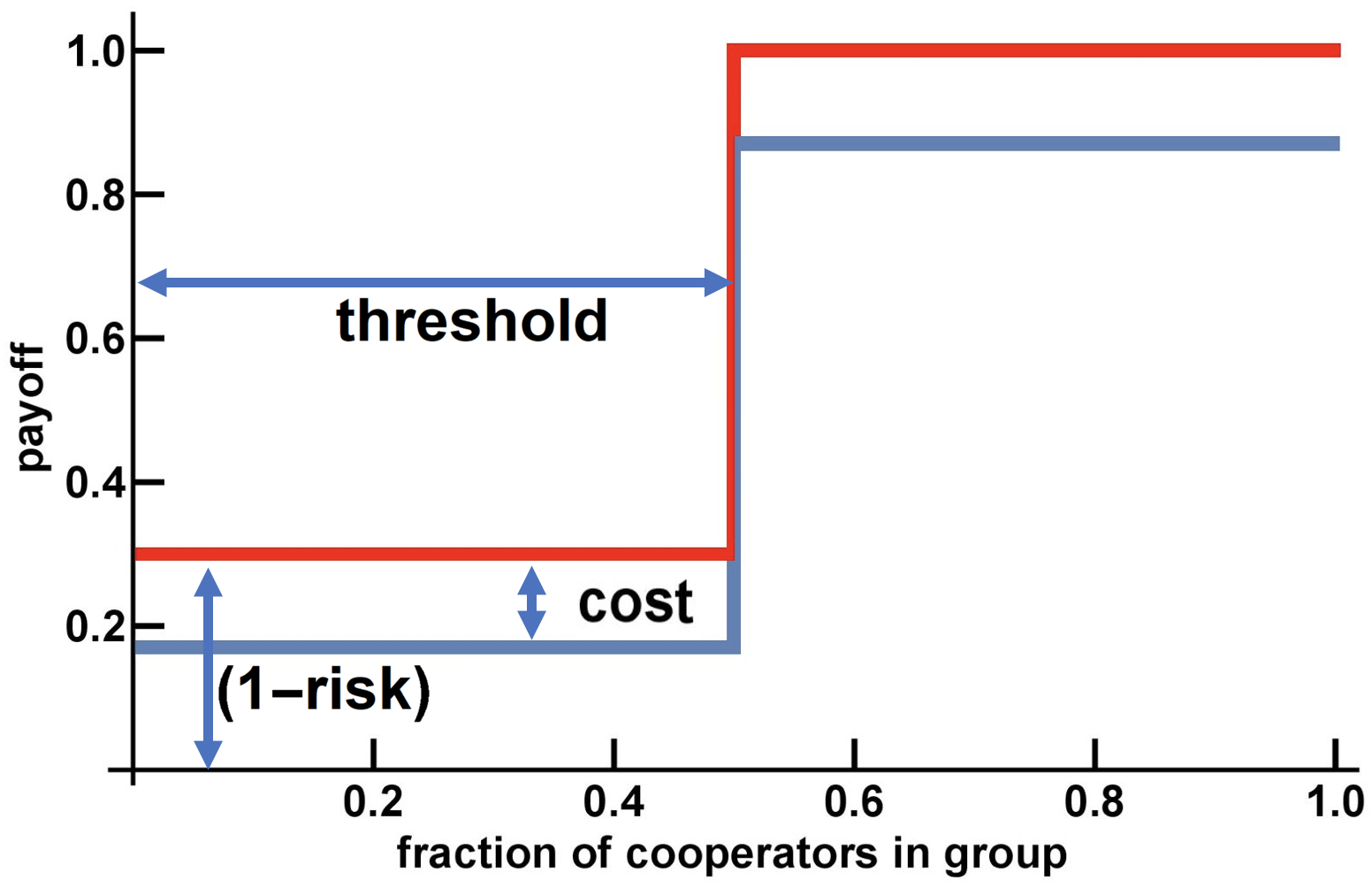 Though the effect of rewards or punishment may seem equivalent — both contributing to give a net gain to cooperators — their impact is significantly different depending on the number of cooperators existing in a population. In the case of linear public goods games (that is, any individual contribution has a positive impact on the group gains), it is known that one should punish if there is a minority of defectors and reward when there is a minority of cooperators. In the case of non-linear public goods (which can characterise climate change dilemmas, see Figure 2), however, we show that reward performs remarkably well on its own.