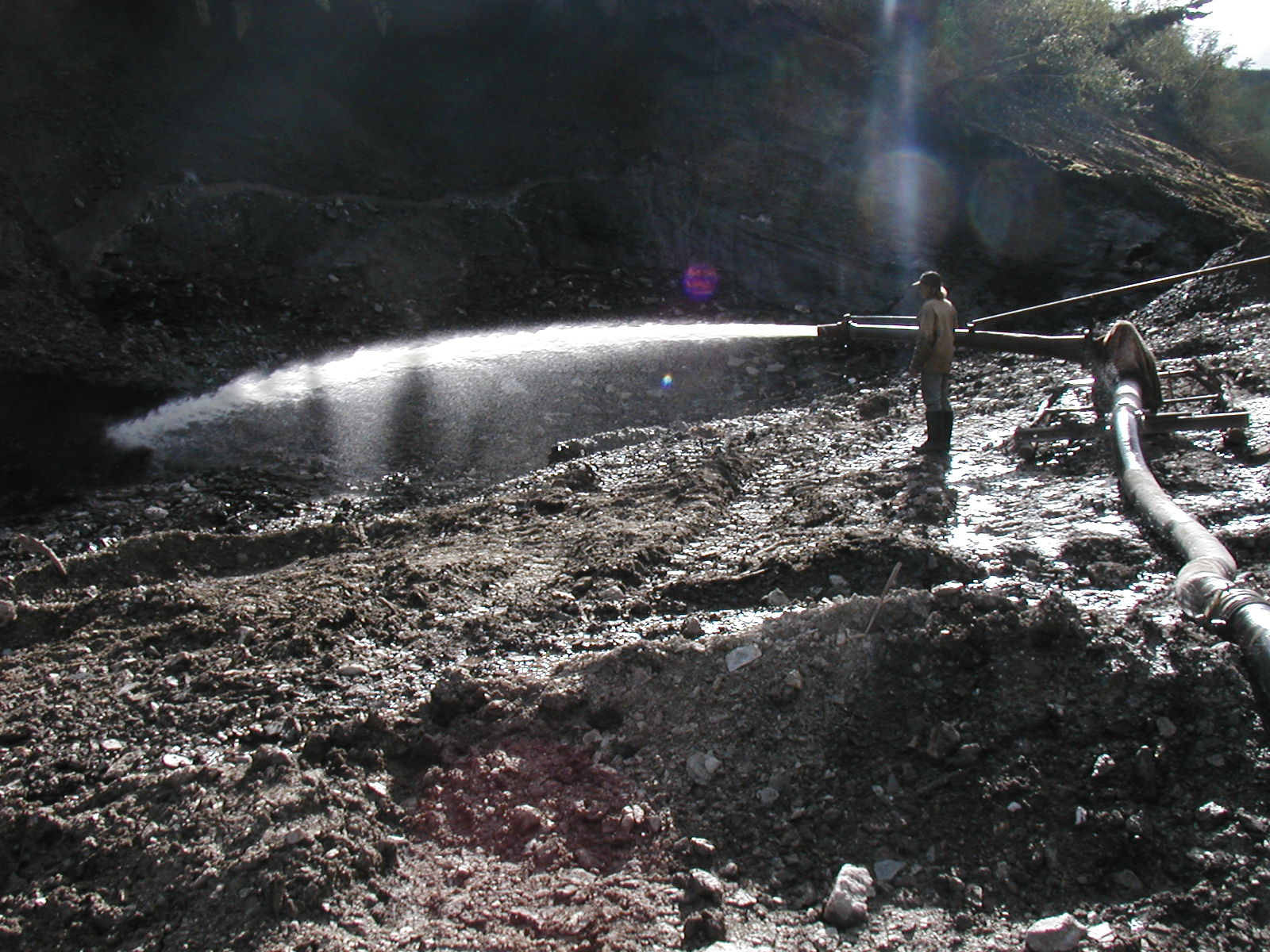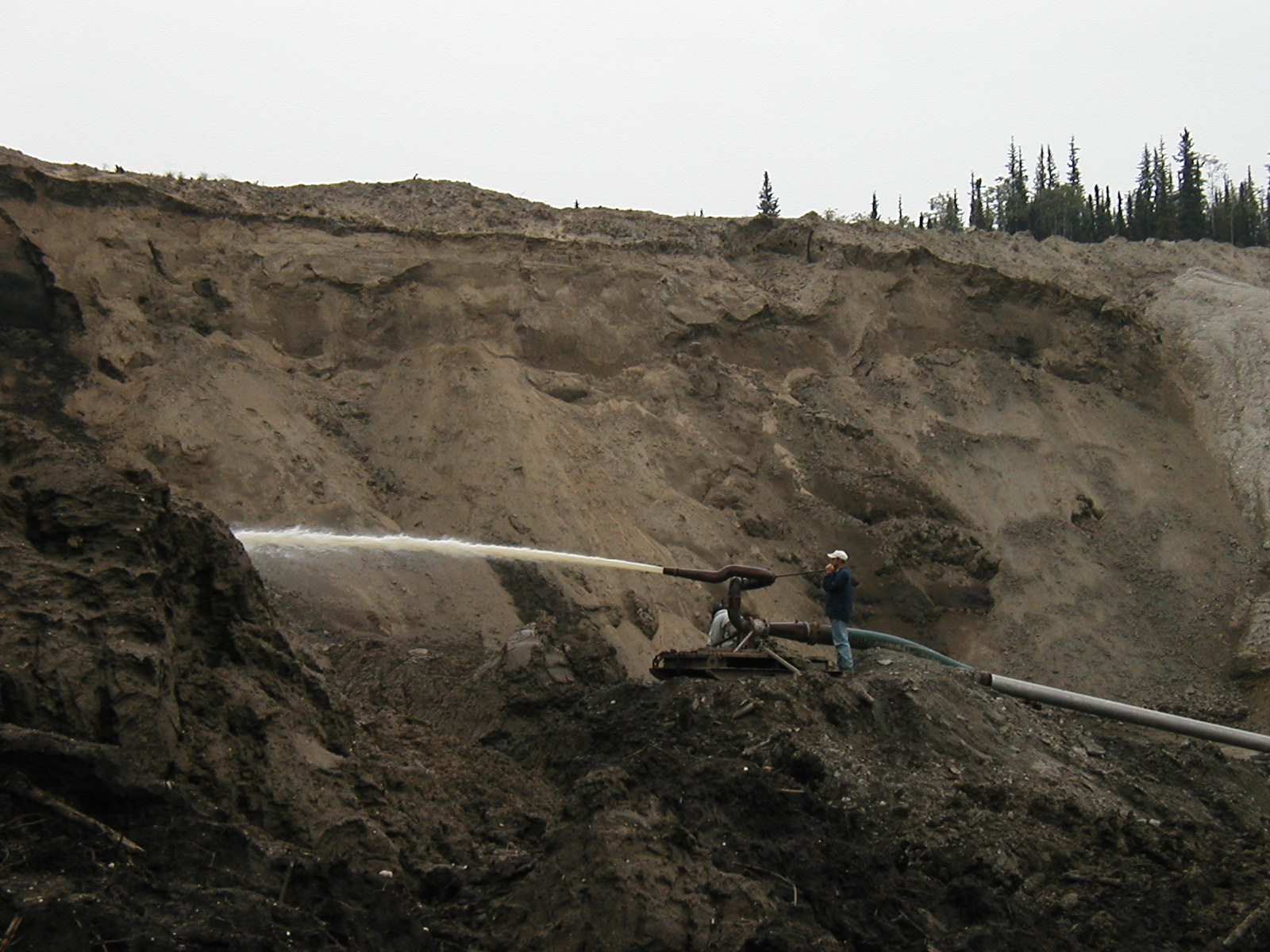 I’d like to focus here on just one facet of the study, and how we obtained the first cave lion genome from a bone from the Yukon Territory in Canada. I’ve been lucky enough to visit this incredible part of the world myself. Way back in 2003 I was there as part of a field trip to find bones of Pleistocene mammals in the permafrost. The Yukon is special not just because it has Pleistocene bones in abundance, but also because they’ve been frozen in permafrost since they were deposited, keeping the DNA and protein inside them beautifully preserved. They are also easy to access thanks to the way the mining industry works in Yukon. The YT is Canada’s premier goldmining region, and has been since the days of the Klondike goldrush, and they employ a specialist method for extracting the noble metal. The Yukon is a hotspot for placer mining. This method relies on a solid understanding of the deeptime processes that the region has witnessed. During the Pleistocene and earlier, ancient rivers ran where there is now solid permafrost. Those rivers eroded through gold rich seams and flushed out small nuggets and golddust all along their lengths (analogous to the process occurring now in streams that can be panned for gold today). Over geological time the rivers meandered, silted up, and got covered with organic hummus, mulch, and soil, which was peppered with the bones of ice age megafauna that lived in the landscape. The placer goldminers today employ diesel powered behemoths to access the old river streams and process the riverbed gravel to extract the gold. To get access to the paths of the old rivers they use enormous water monitors: water cannons that fire hundreds of litres a minute at the organic overburden that stands between the modern ground level and the gold rich gravels. The liquid water melts the permafrost and turns it into a viscous stinking mud (I know, having been stuck thigh-deep in it many times). To make the system a closed loop, the monitoring is designed so that the melting mud travels back to a holding pond where the water can be recycled for more monitoring. As it winds back to the holding pond, all the megafaunal bones that have been locked in their permafrost freezer for ten thousand years and more pop out of solution and get deposited along the banks of the mud stream. It was our job back in 2003 to constantly walk up and down alongside the stream looking for bones. We were richly rewarded. Hundreds of bones from bison, horse, caribou, and the occasional bear, lion, and mammoth were the fruits of our fieldwork.