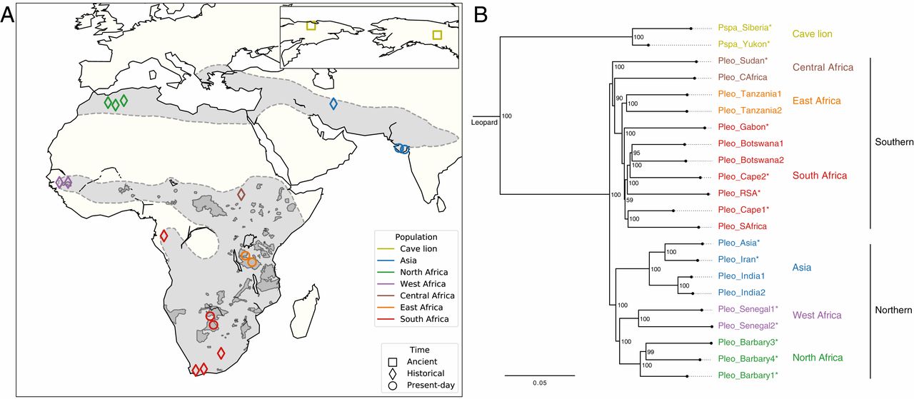 In our paper we take a big picture approach to look at the evolutionary history of lions. We report the first nuclear genomes from extinct Pleistocene felids: two cave lions from Siberia and the Yukon Territory. We also report the first genomes from a recently extinct Barbary lion, Cape lion, and Persian lion.