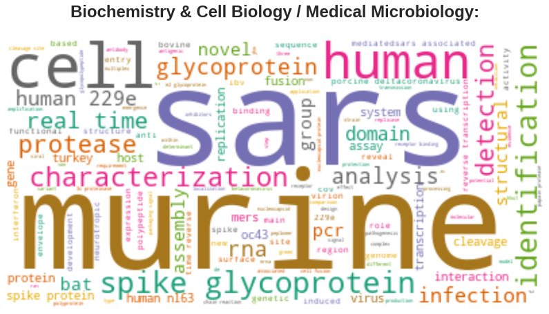 However, a close look at the word cloud shows that there are also words related to animals (“avian”, “canine”, “porcine”), as well as terms related to genetics (“recombinant”) and cell biology (“spike protein”). Clearly there are prominent similarities across the themes, despite the fact that 78% of authors in the sample had published articles that were found in only one of them.