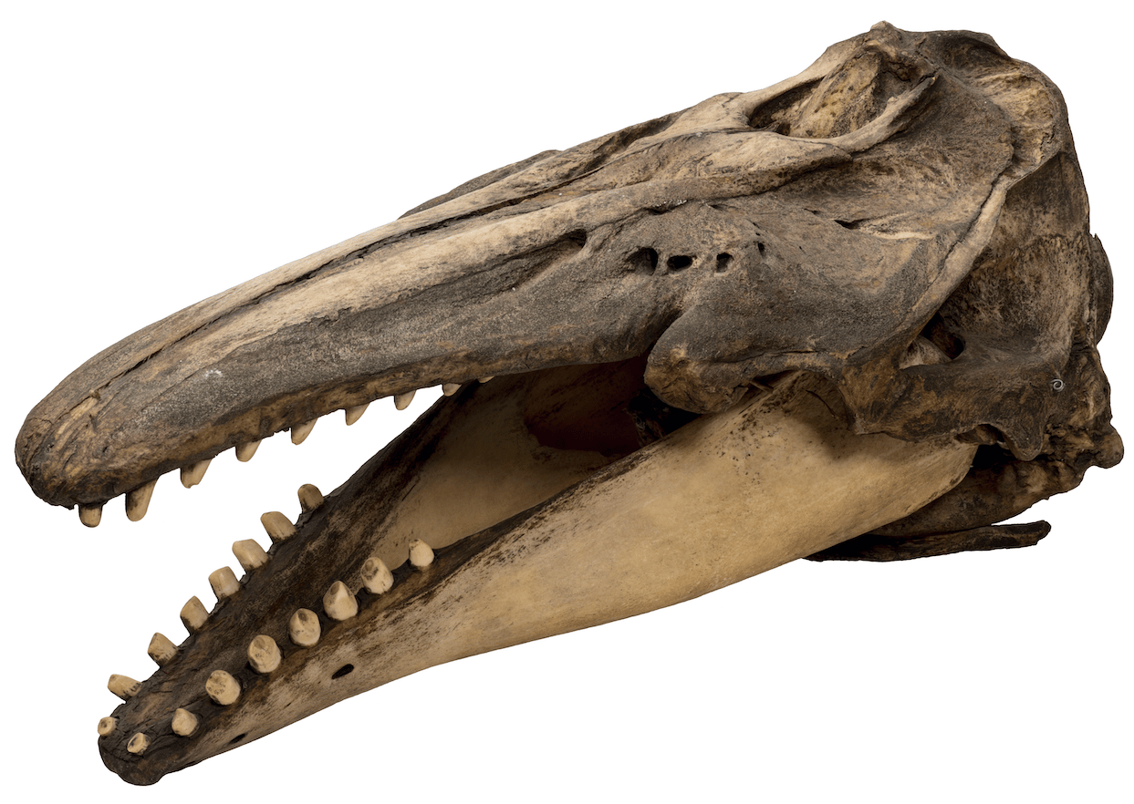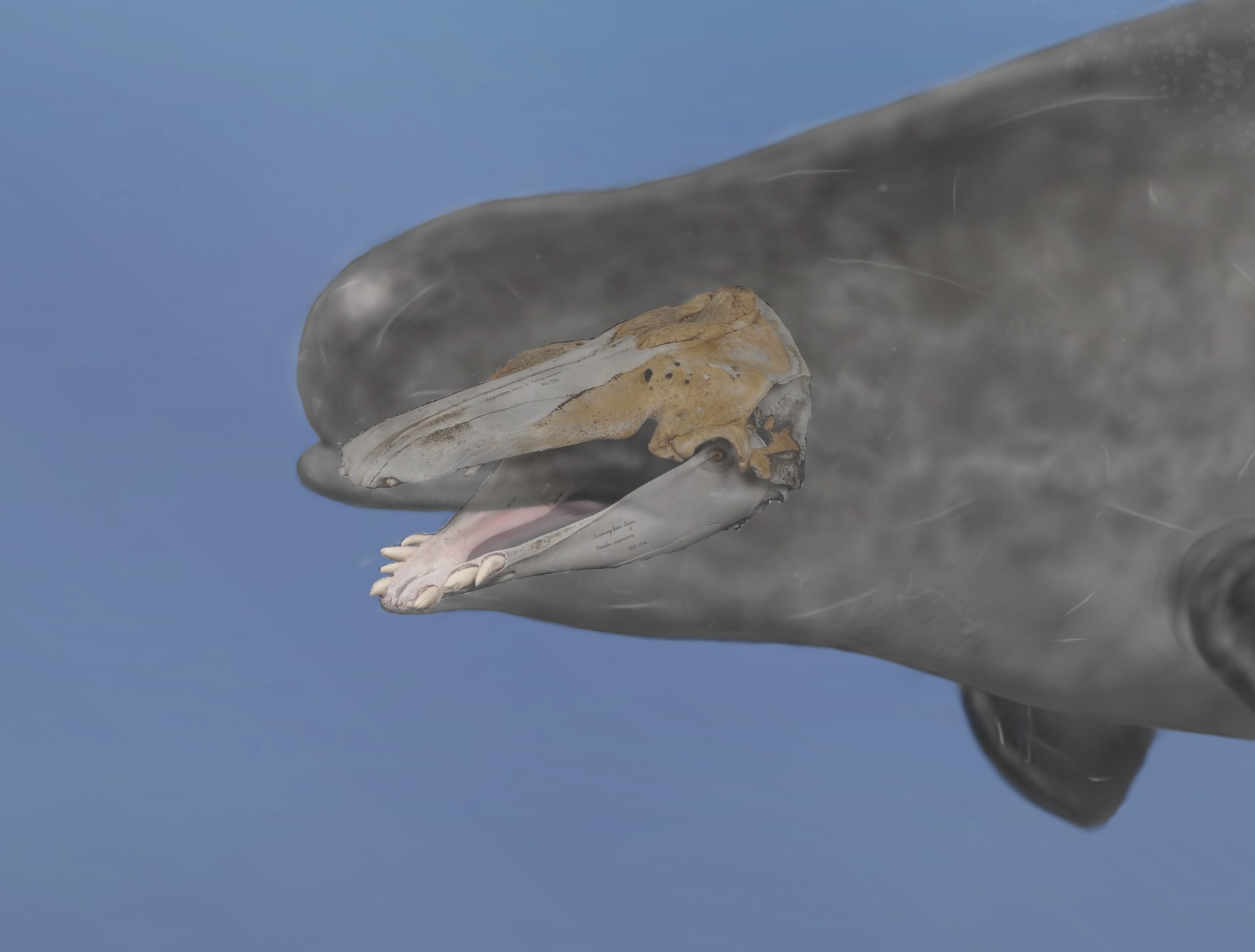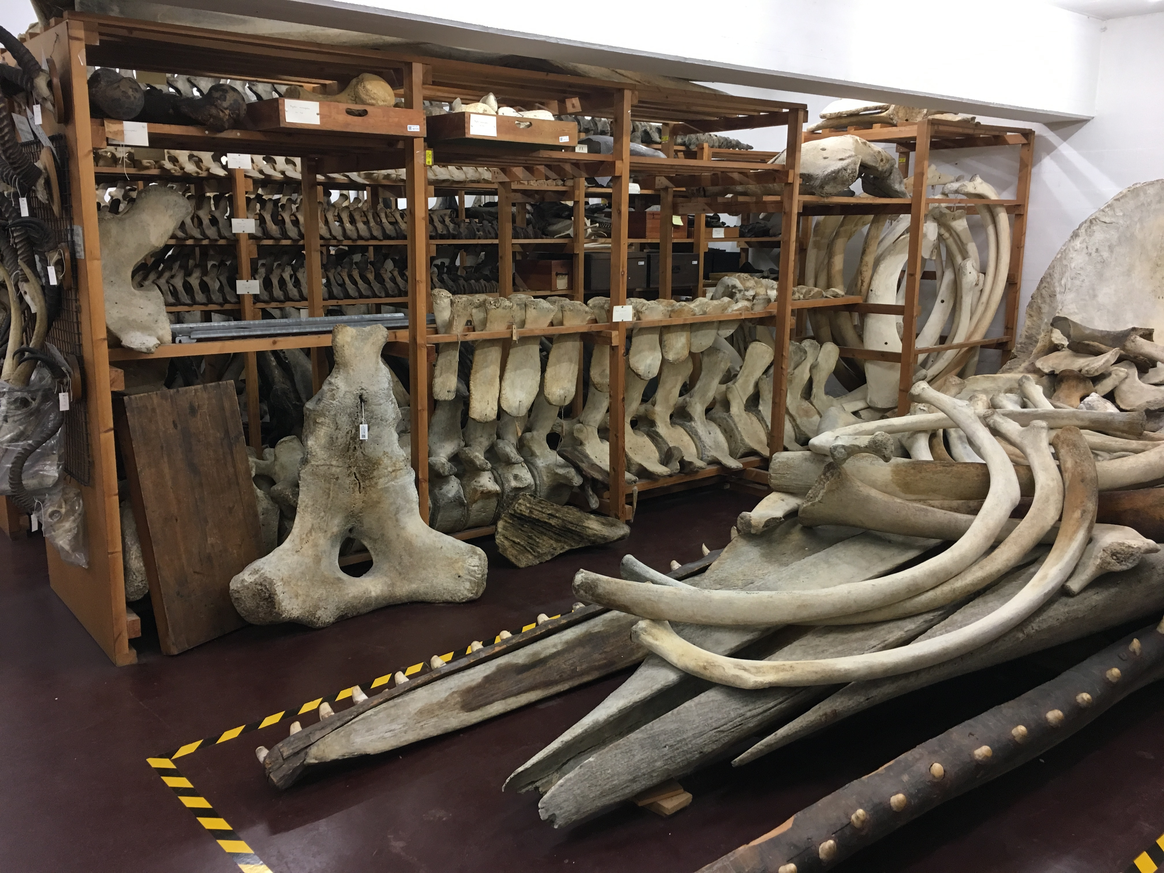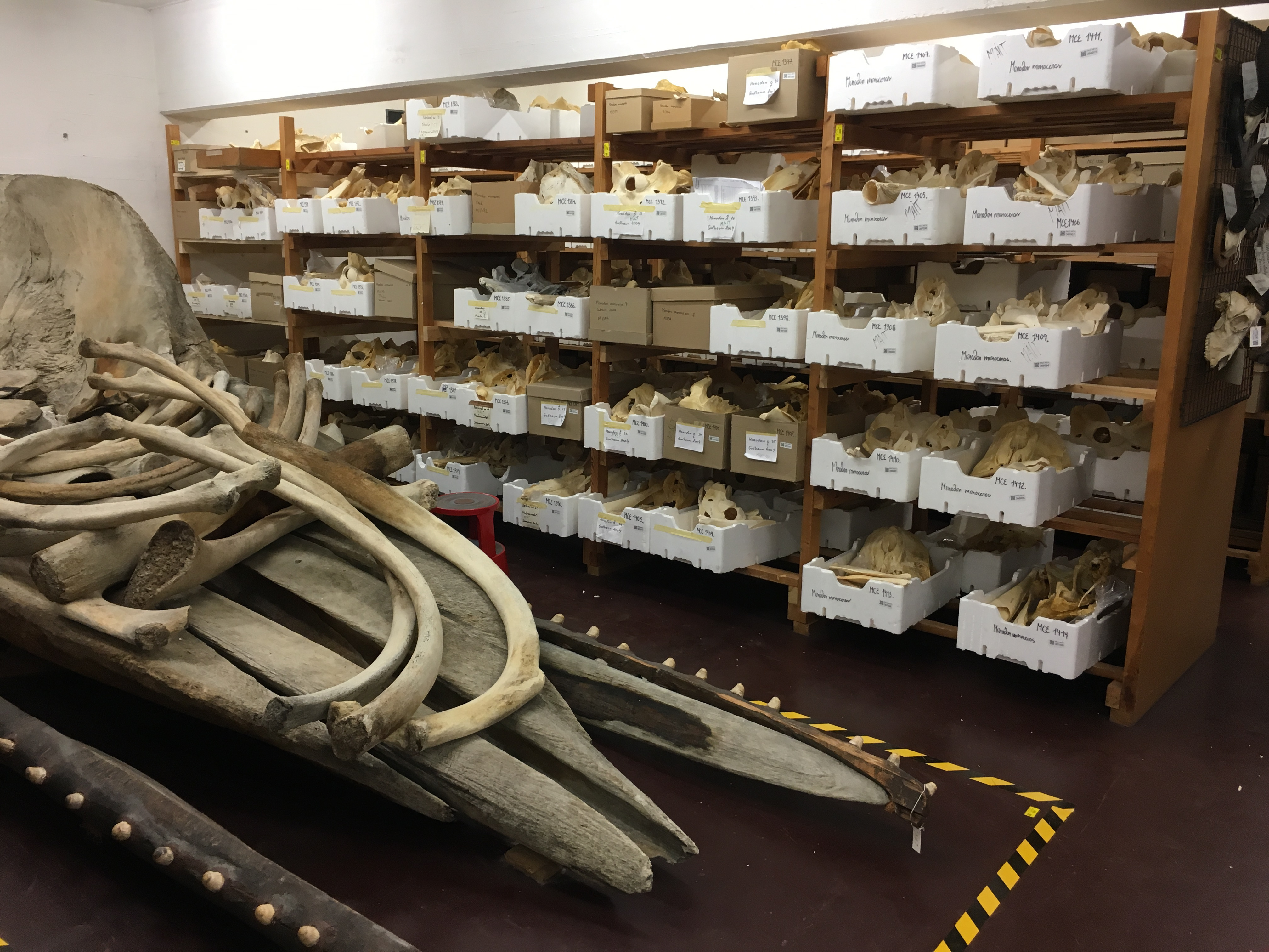 When you push open the large metal door and enter the mammal collections of the Natural History Museum of Denmark, University of Copenhagen, you immediately get hit by a pungent smell of dust, whale blubber and chemicals. The skull, ID MCE1356, rests in a wooden box on a table, in between mounted whale skeletons and rows of cetacean bones and skulls stacked from floor to ceiling in wooden scaffolds.