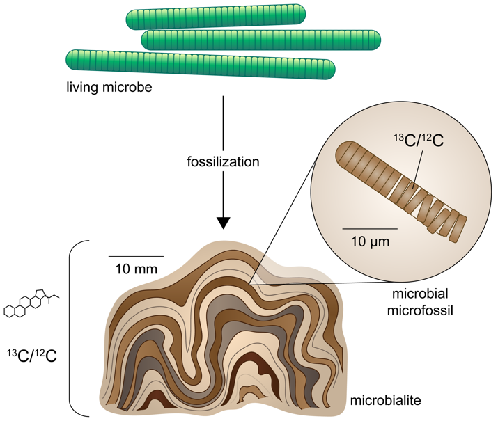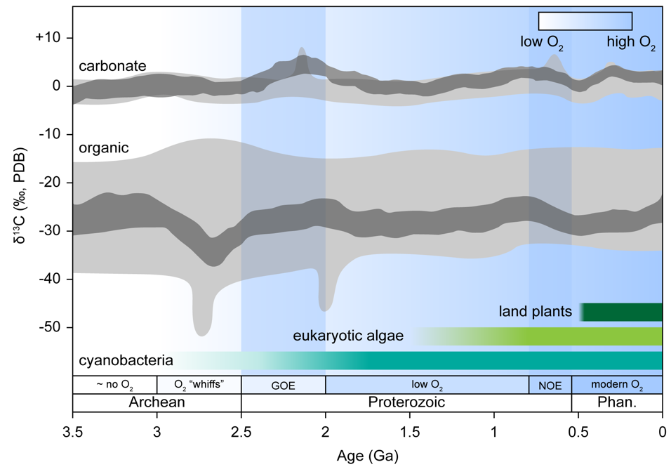The oldest and most wide-ranging signal of biological activity on our planet is the carbon isotope biosignature. These biosignatures reflect the long-term evolution of the microorganism-hosted metabolic machinery responsible for producing deviations in the isotopic compositions of inorganic and organic carbon. Despite billions of years of ecosystem turnover, evolutionary innovation, organismic complexification, and geological events, the organic carbon in the rock record tells an essentially monotonic story: The carbon isotope biosignature has remained remarkably unchanged over ~3.5 billion years (Figure 1). This peculiar monotony challenges much of what we understand about the dynamism of microbial and molecular evolution.