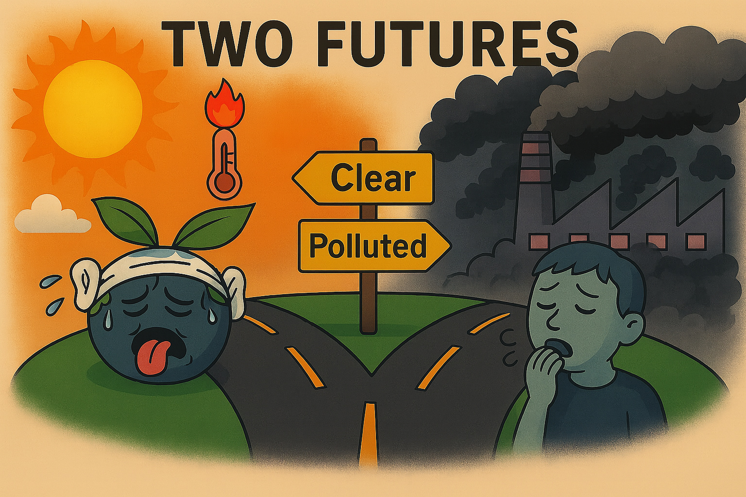 But keep the pollution, and you condemn millions to respiratory disease, lung cancer, and premature death, all while the humidity creeps ever higher toward that deadly threshold.