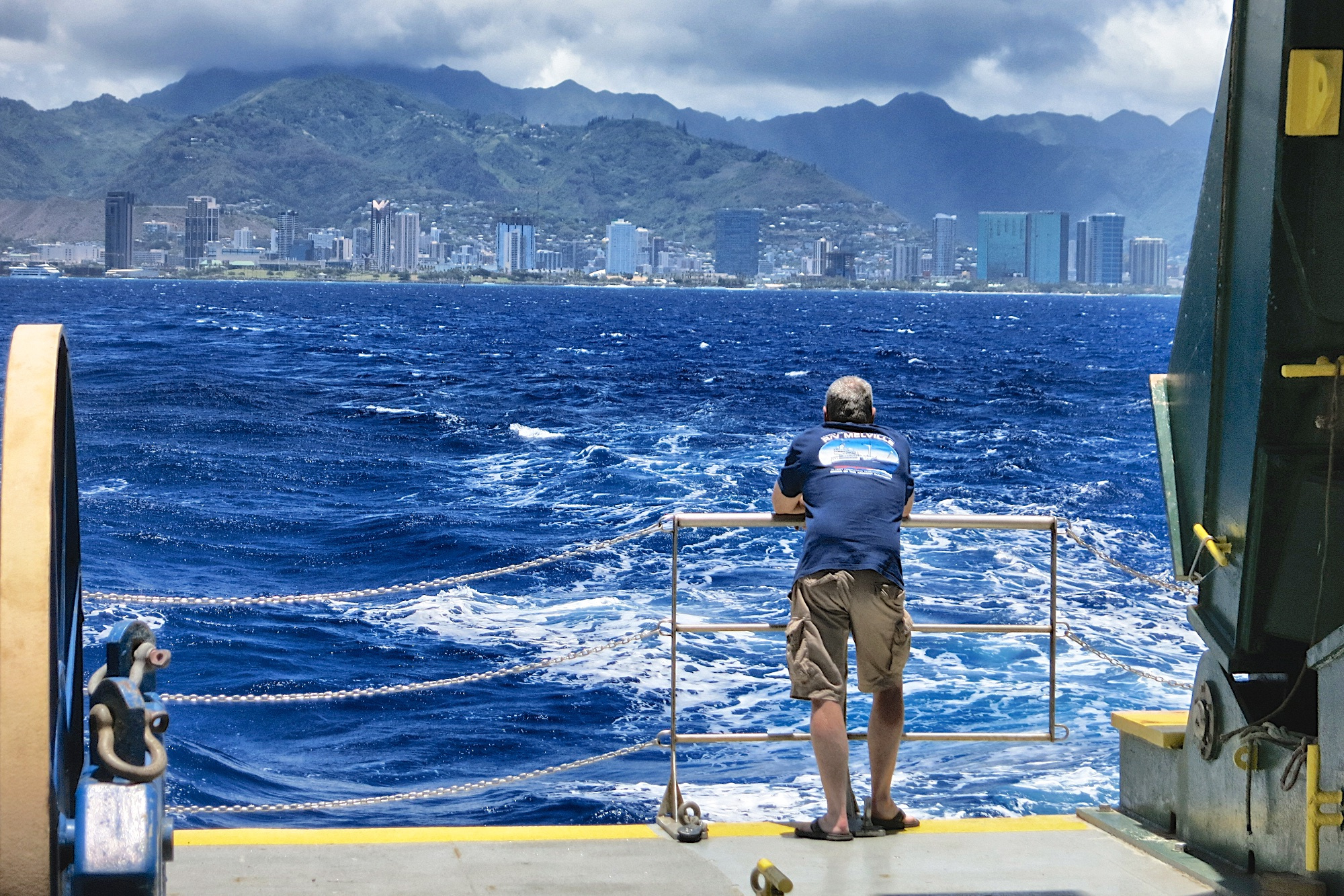 Photo 1. A scientist contemplates what lies ahead as we depart from Honolulu harbor. Courtesy of Sarah Searson