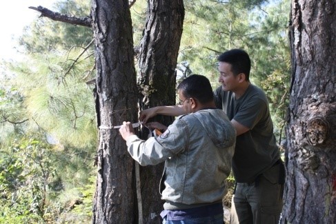Taking tree measurements In Nepal, to calculate forest carbon storage (© Jenny Merriman)