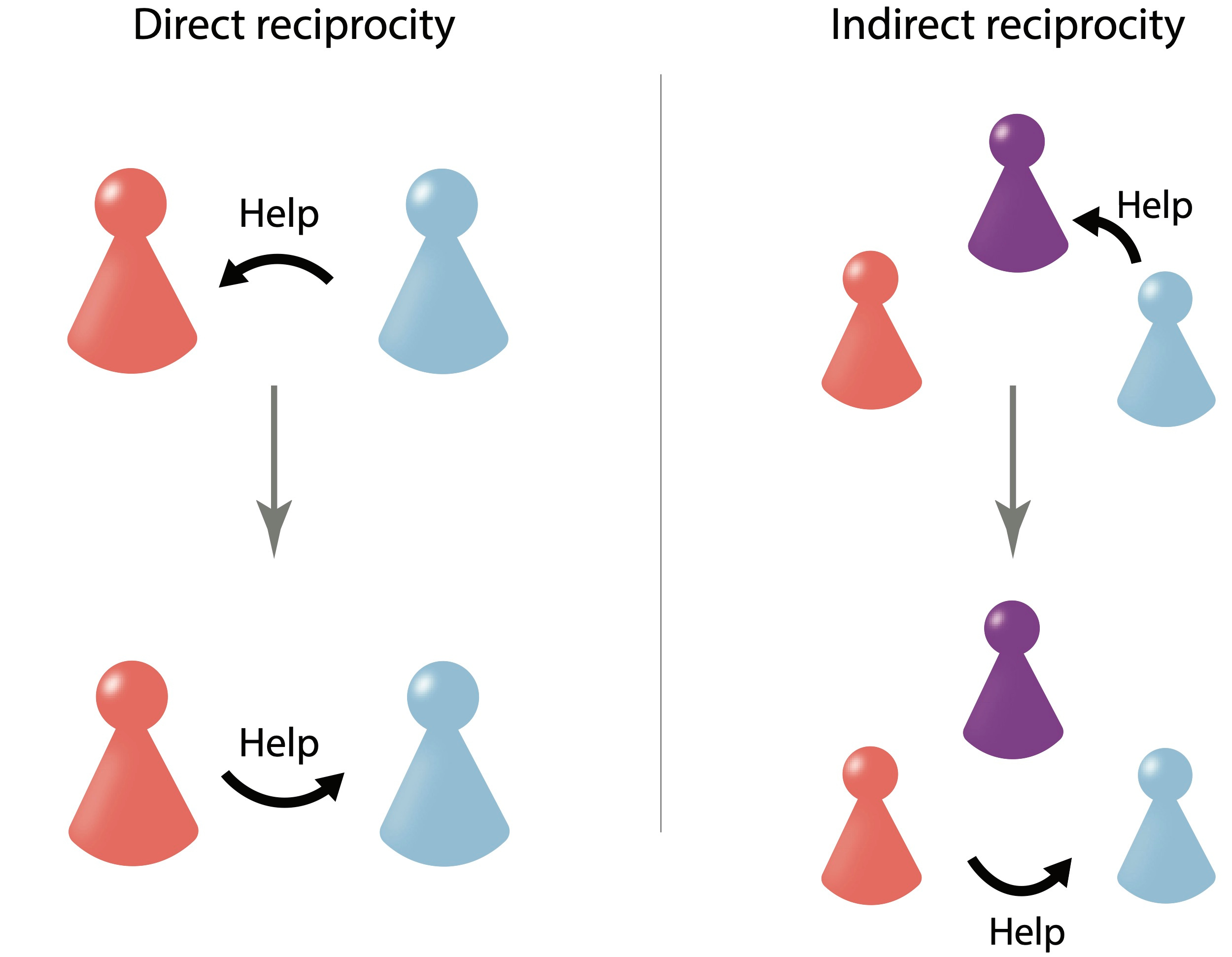 Most humans are conditional cooperators. When asked for help, they are more likely to grant a favor if the other person is known to be generous too. The scientific field that models the emergence of such conditional behaviors is evolutionary game theory. It considers populations of interacting individuals, called players, who make decisions based on their strategies. The strategies tell the individuals how to act in a given situation. In the context of cooperation, individuals might have the strategy to always help; they might choose to never help; or they may act conditionally, depending on the interaction partner’s previous behavior. When individuals preferentially help those who have been helpful in the past, they engage in reciprocity.