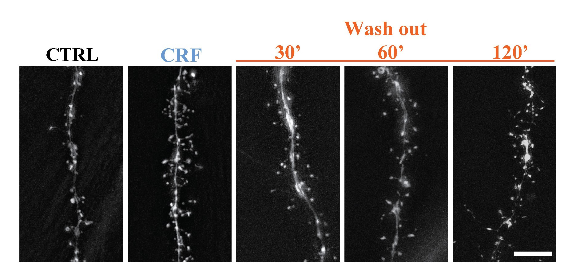 In our paper, " Cdk5-dependent rapid formation and stabilization of dendritic spines by corticotropin-releasing factor”, published in Translational Psychiatry (Vandael et al 2024), we describe the "long-term effect" of acute CRF exposure ex vivo on synaptic integrity over a time course of multiple hours (Fig. 1).