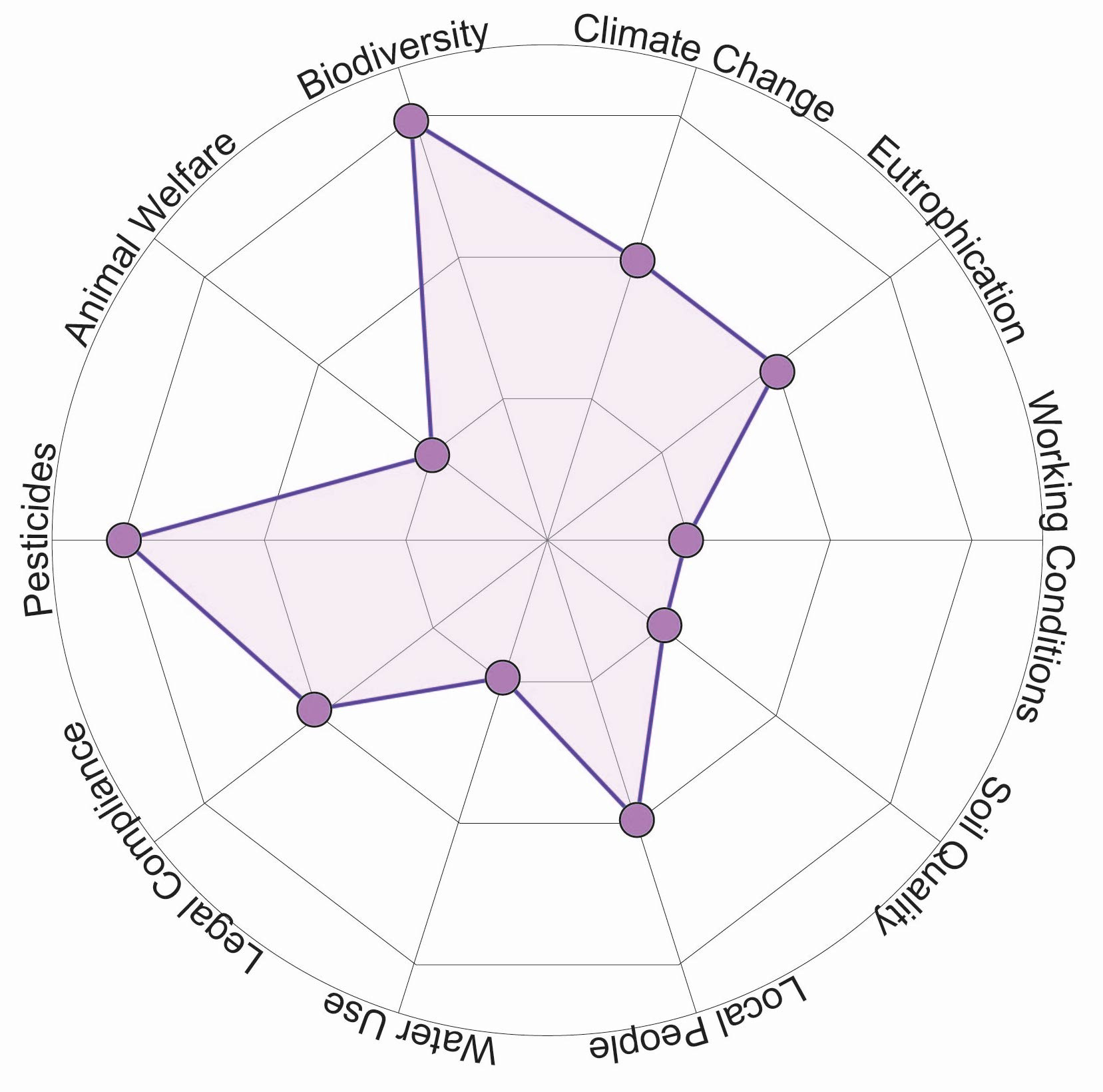 Looking beyond biodiversity, other questions arise. Soil quality, eutrophication, chemical use and water quality are inextricably linked, how will this be reflected? And perhaps most importantly, how will the factor “law compliance and traceability” be treated? If we don’t know where a product originated then it becomes impossible to give an accurate assessment of nearly any of the subsequent sustainability indicators.