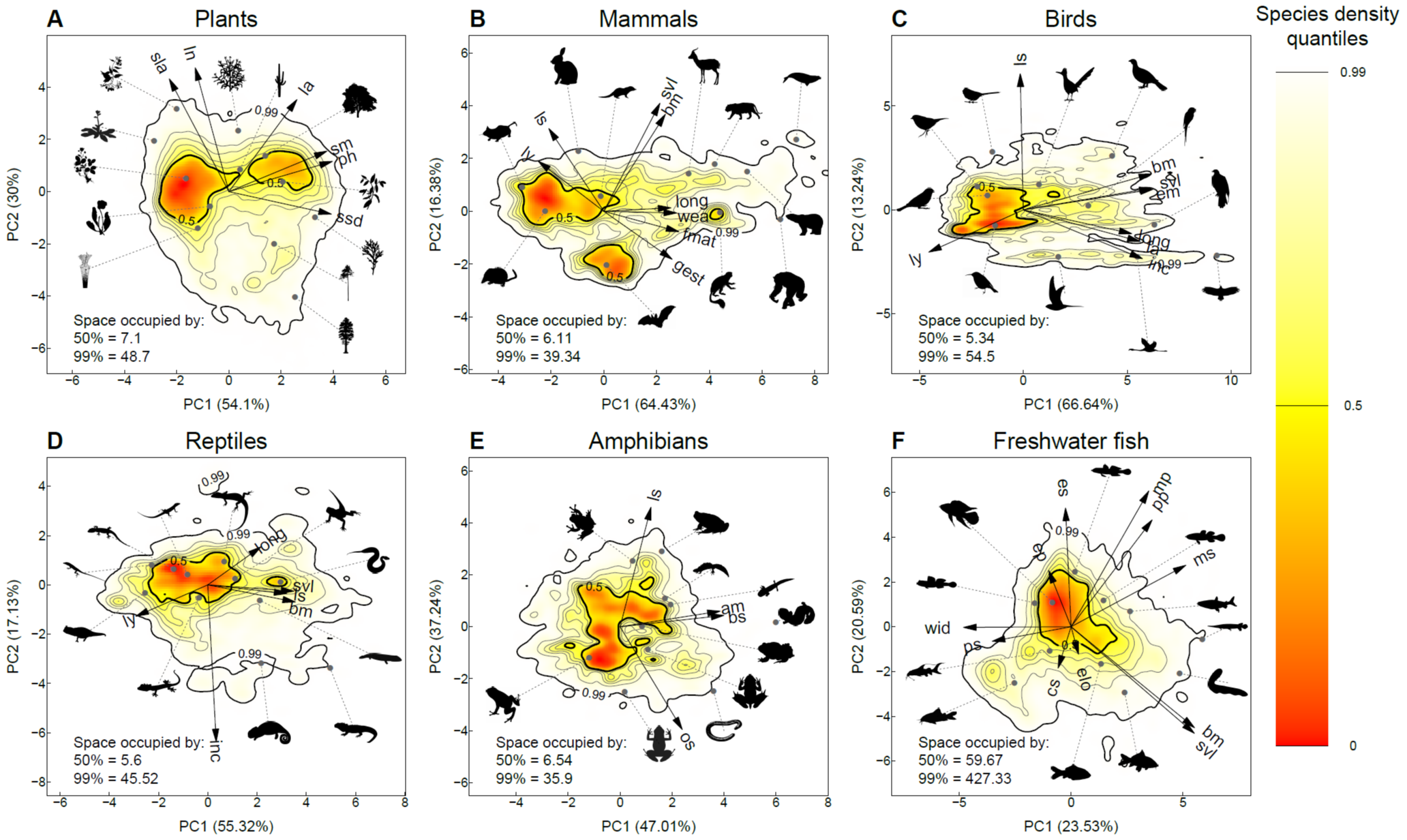 Fig. 2: Functional spectra of plants and vertebrates. (Carmona et al. 2021)