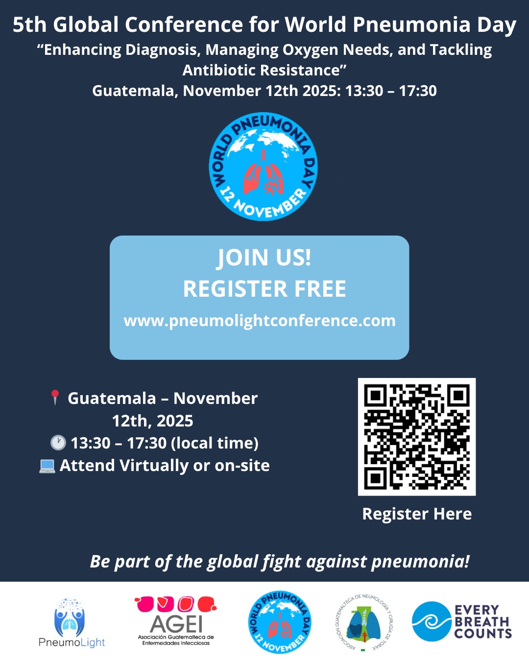 On November 12, as part of the Worldwide Pneumonia Awareness Campaign-Pneumolight, we will host the 5th Global Conference for World Pneumonia Day, a free hybrid event bringing together leading experts and organizations in global health, infectious diseases, and respiratory medicine.