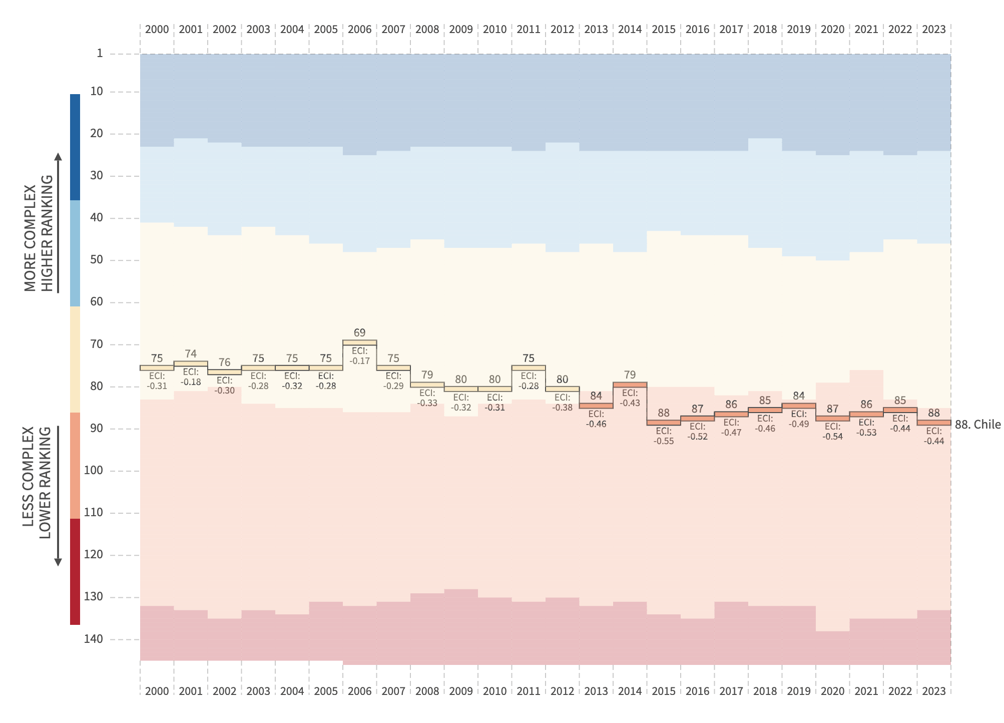 Fig. 2 Economic Complexity Index of Chile, from 2000 (75) to 2023 (88).