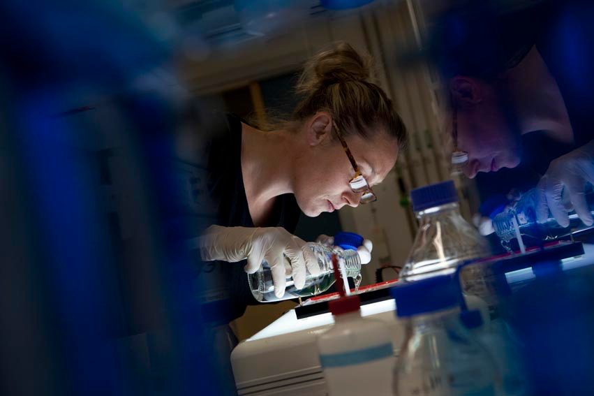 Researcher Emily O’Connor beginning lab work to sequence the immune genes of 32 species of songbird. Photo courtesy of Aron Hejdstrom.