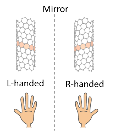 However, the very basic structural parameter of a single carbon nanotube, i.e., the inherent handedness (left-handed or right-handed helicity, Fig. 1), can’t be determined by optical spectroscopy yet. Conventional circular dichroism techniques, which are widely used to determine the handedness of macroscopic chiral structures, have failed for single carbon nanotubes due to the extremely weak chiroptical signals compared to the strong excitation light in a single nanotube. As a consequence, their development of sophisticated handedness-related devices remains stagnant.