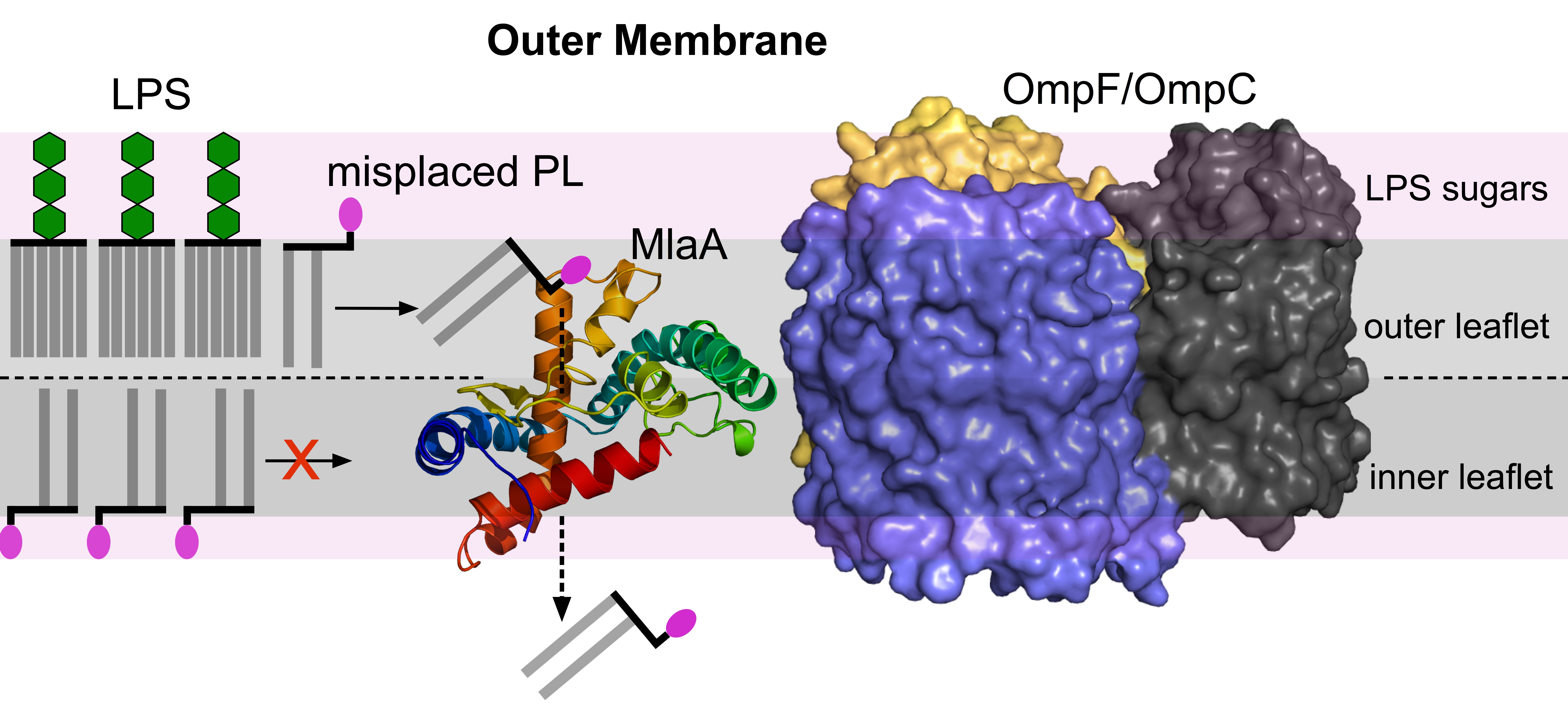 Figure 2. Representation of the OM with the structural model of MlaA showing the removal of PLs from the outer leaflet.