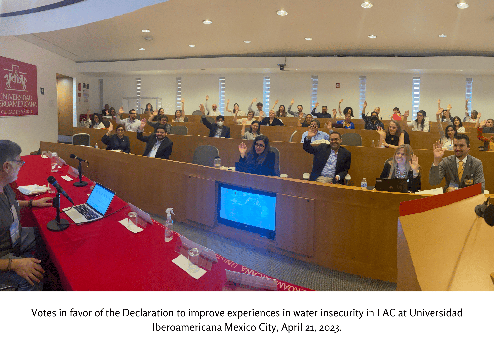 A key outcome of the Mexico City meeting was a consensus vote on a Declaration expressing commitment to improving our understanding of the experiences of water insecurity in LAC. The attendees agreed to collaborate between universities, with international organizations, policymakers, and government representatives to promote a more holistic approach to understanding and mitigating water insecurity. The Declaration has been published by the International Journal for Equity in Health in English, Spanish and Portuguese, and is available at [https://doi.org/10.1186/s12939-023-01956-w].