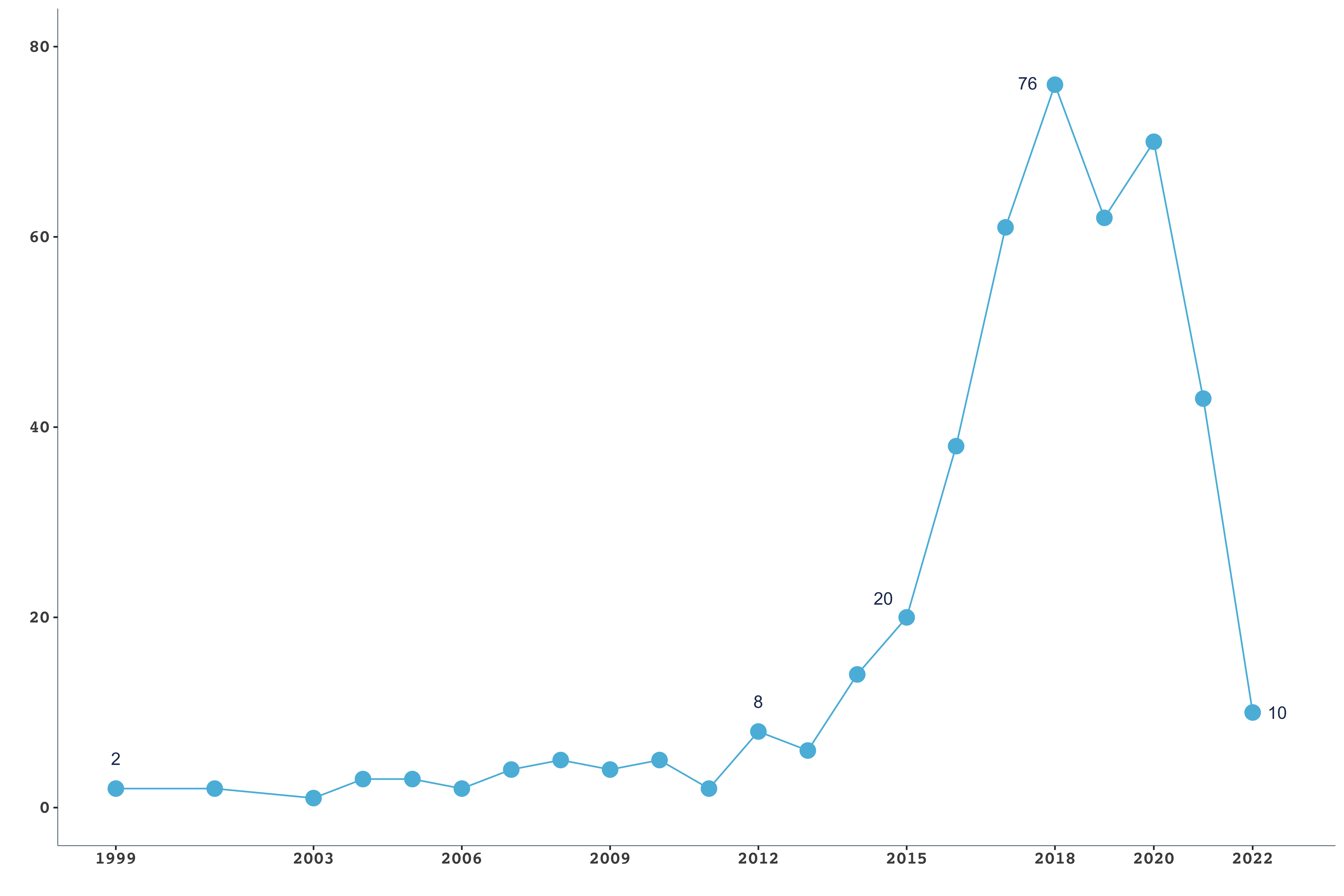 In Fig. 1, the yearly distribution of new start-ups per year is given. In our dataset, it appears that the number of start-ups founded has increased sharply starting in 2013, peaked in 2018, and has been slightly declining ever since. In Fig. 2, the global distributions of these companies are provided. Though it might be important to keep in mind that our dataset does not cover stealth start-ups with zero visibility and might have a lower representation of start-ups from non-English speaking countries.
