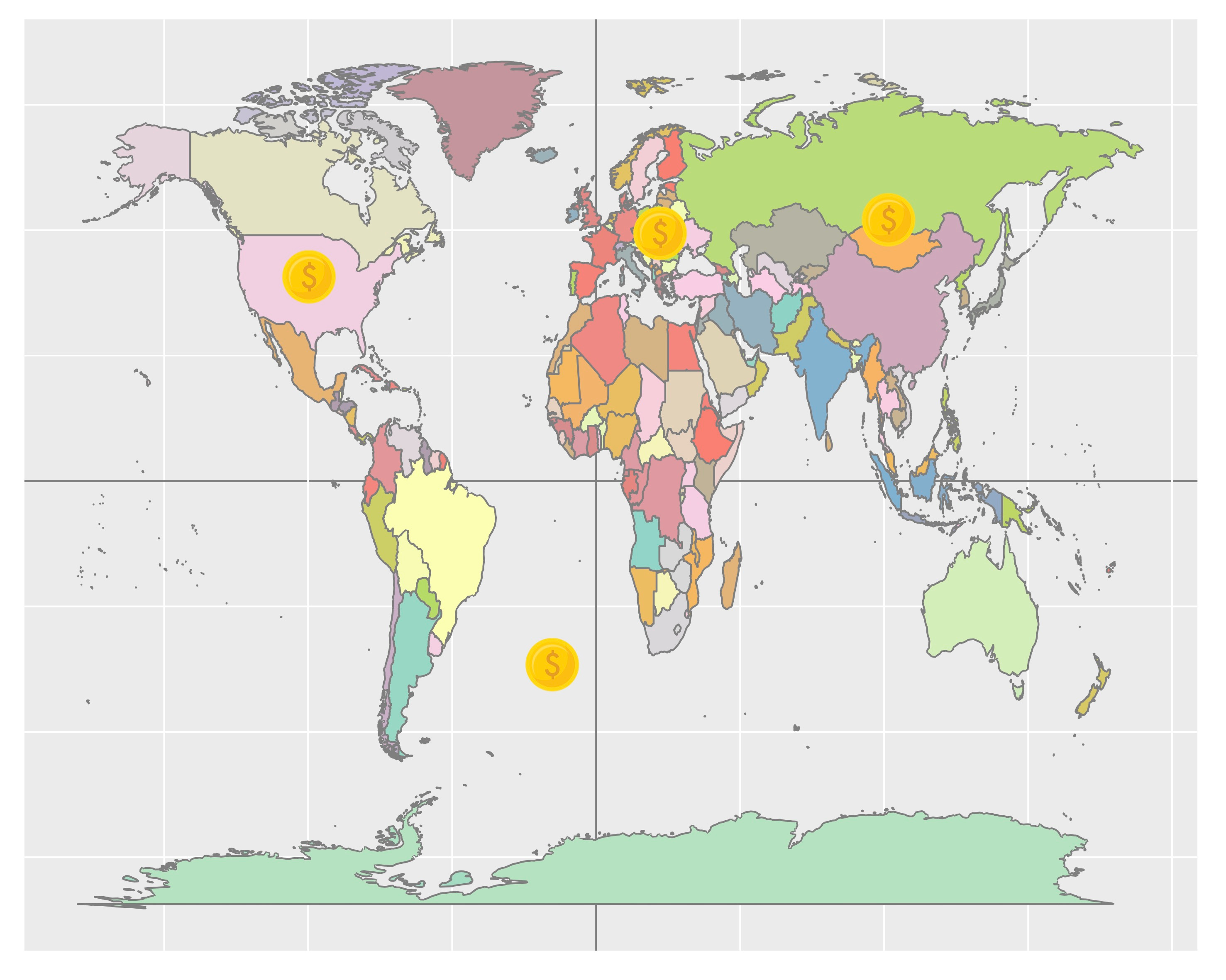 Figure 1. Illustration of throwing coin randomly on a world map.