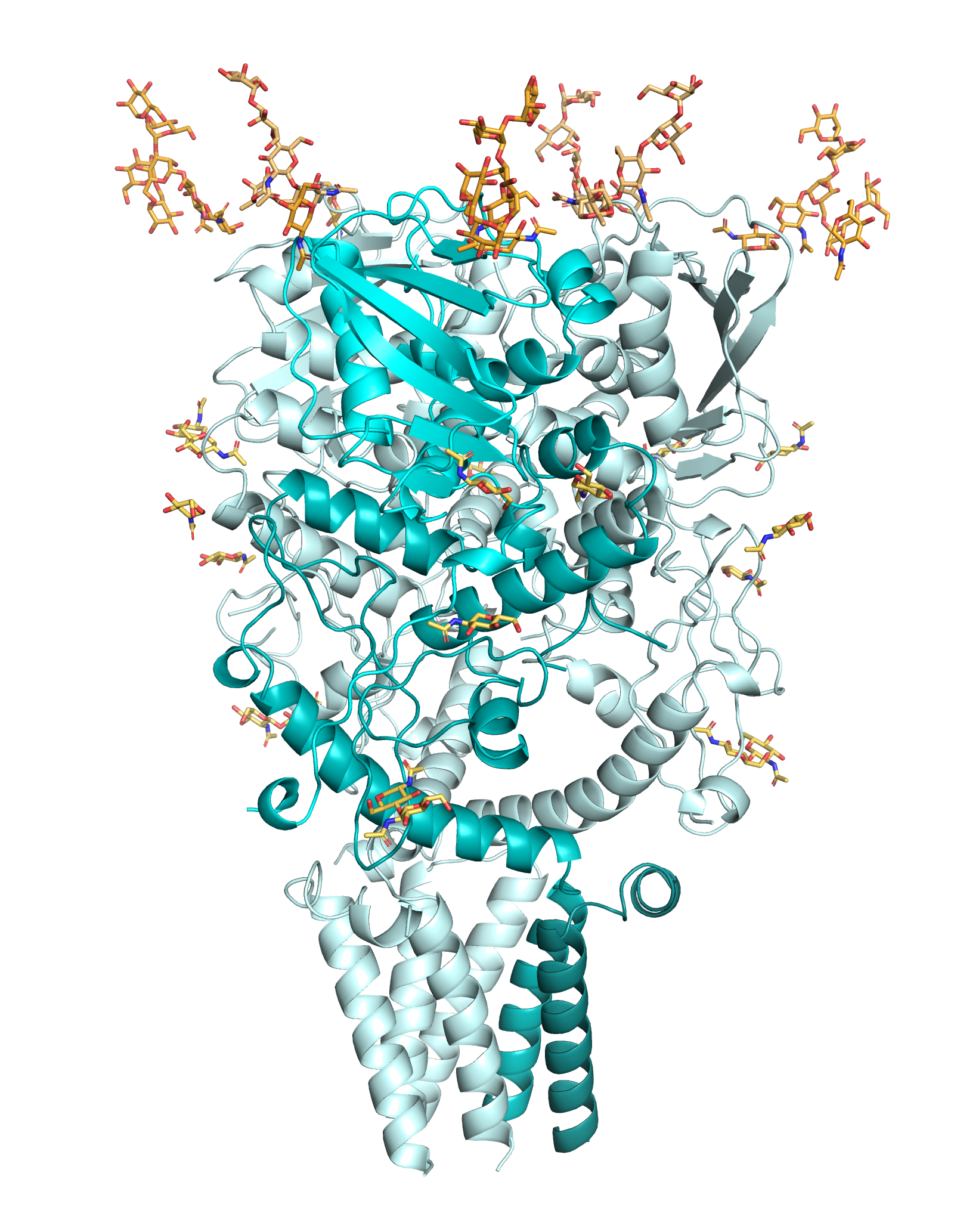 Other glycans are colored yellow.