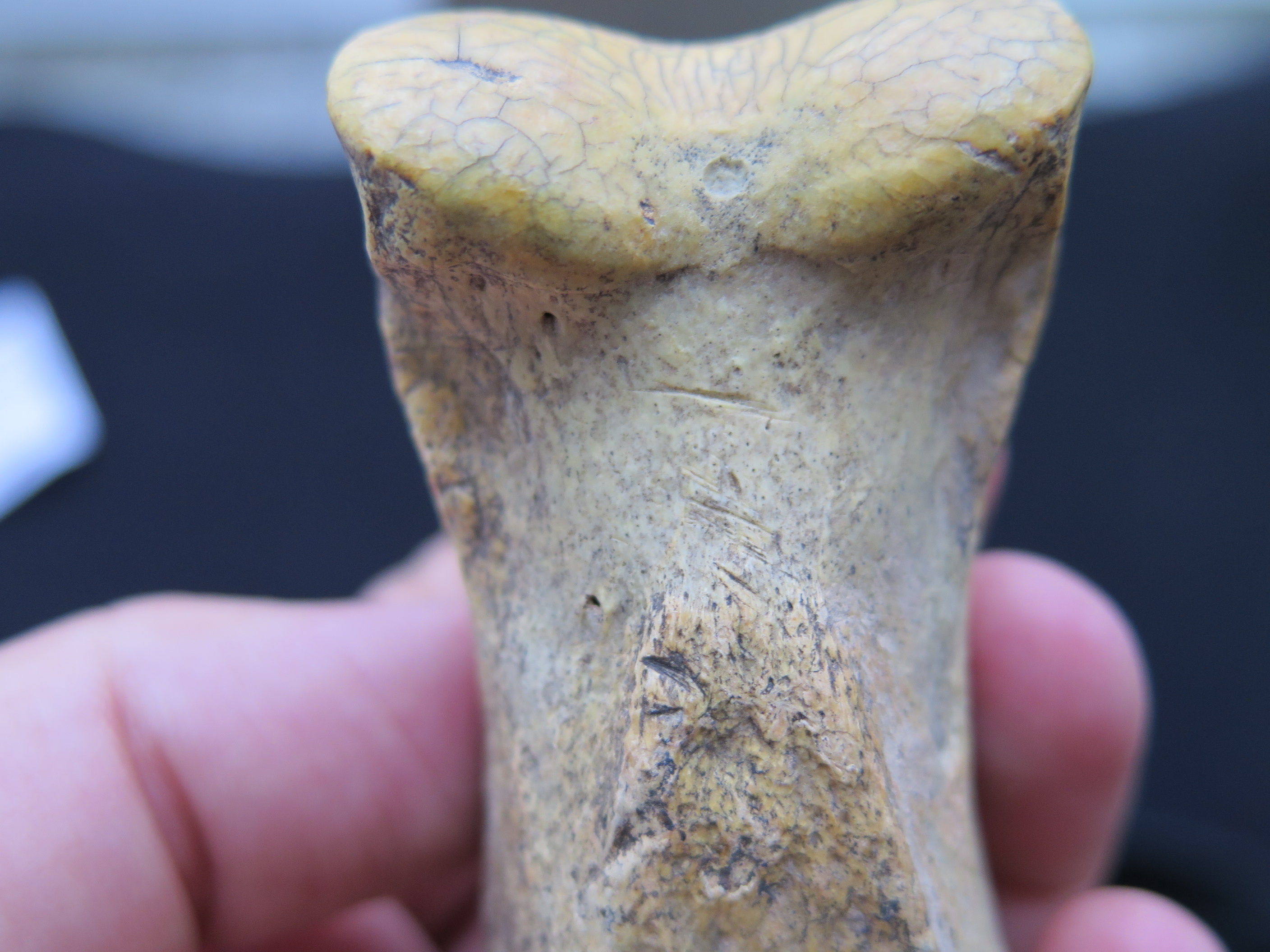 We returned to Novosibirsk a few months later, this time in the Siberian winter, with thick snow on the ground and daytime temperatures of -20 to -30°C. Because we were interested in knowing when human groups lived at the cave we concentrated on carefully sampling material which showed human modification; bones with butchery marks, pendants made of animal teeth and tools carved out of bone and ivory. More trips took place each year, to the cave in summers and at Novosibirsk for sampling during the cold winter months.