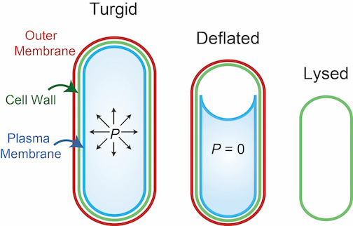 However, the idea that the cell wall was the only mechanical element in Gram-negative bacteria and, de facto, that the outer membrane was just another permeability barrier made its way into the textbooks. Consider the classic Brock Biology of Microorganisms: “[Peptidoglycan is a] rigid layer that is primarily responsible for the strength of the wall. In Gram-negative bacteria, additional layers are present outside this rigid layer…[The outer membrane] is essentially a second lipid bilayer.”