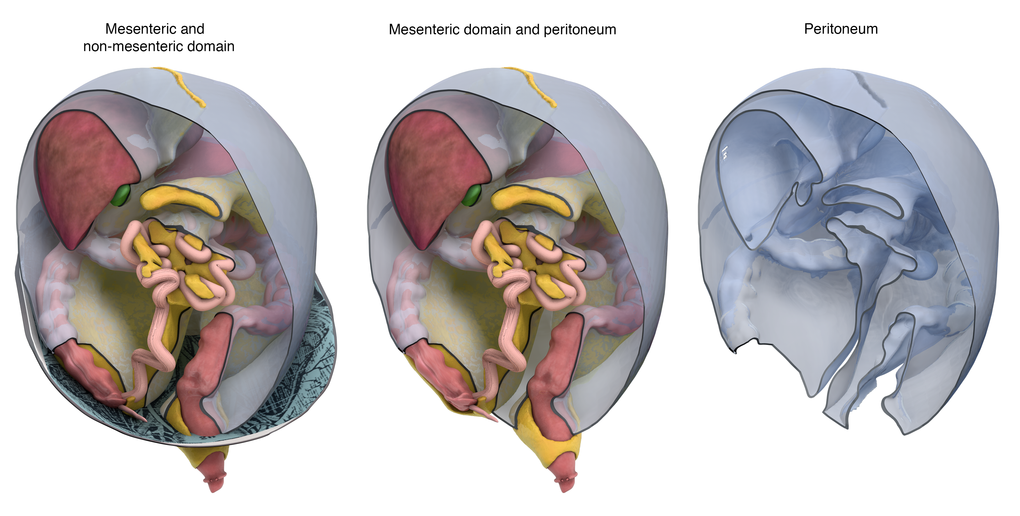 Collectively, the findings of the paper support the Mesenteric Model (i.e. description) of abdominal anatomy. Whilst it was suspected this model held, the findings are direct evidence that it does so3,4. The Mesenteric Model is welcome as it is far simpler than the conventional, peritoneal-based description of the abdomen.