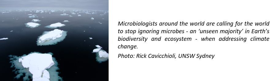 The ability of science and society to address climate change will be considerably empowered by microbiologists, by agencies demonstrably incorporating microorganisms into their ‘thinking’, and by society gaining an enhanced appreciation for microbes through improved education in microbial literacy.