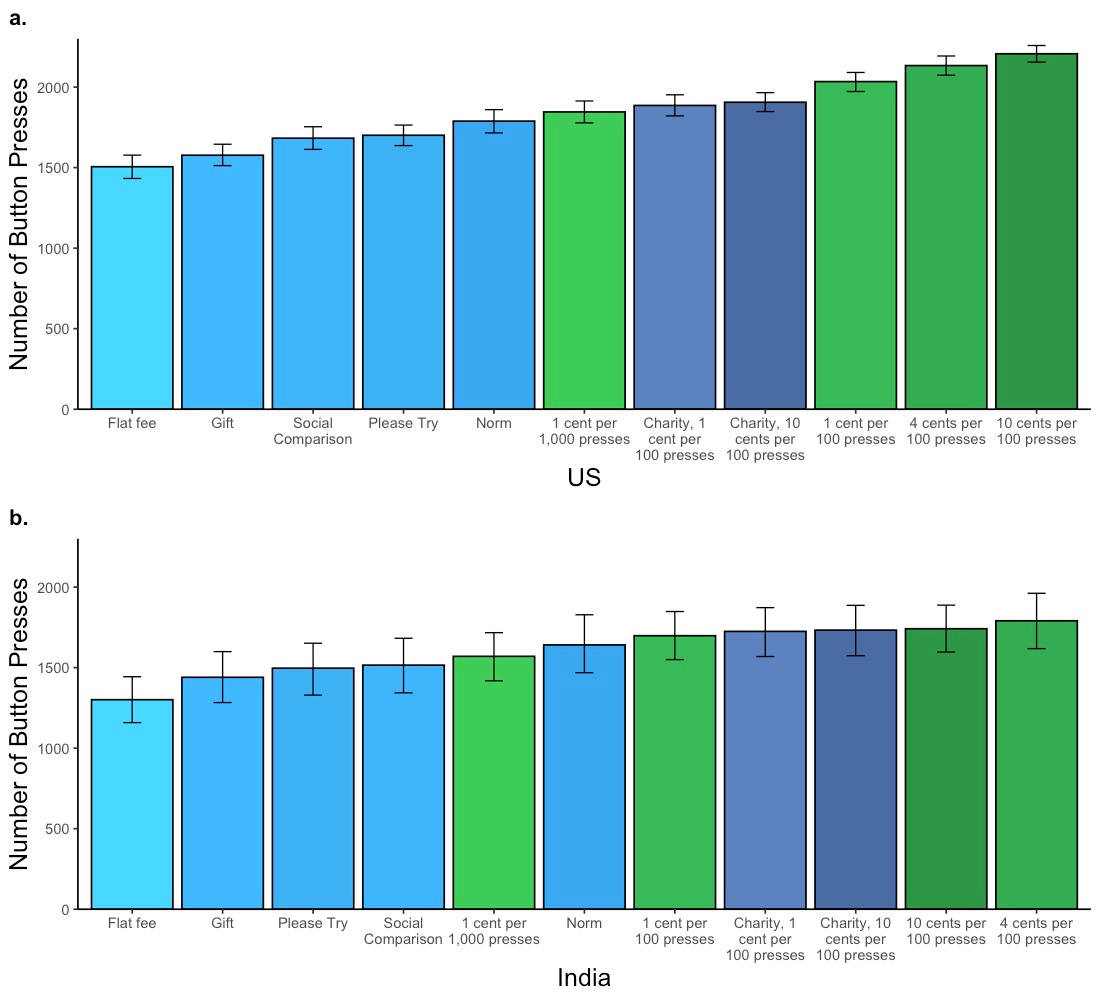 So the economists tested several non-monetary ways to motivate people. For example, in one condition, they told participants that other workers clicked the buttons over 2,000 times—a social norm. In another condition, they simply asked them to please try hard.