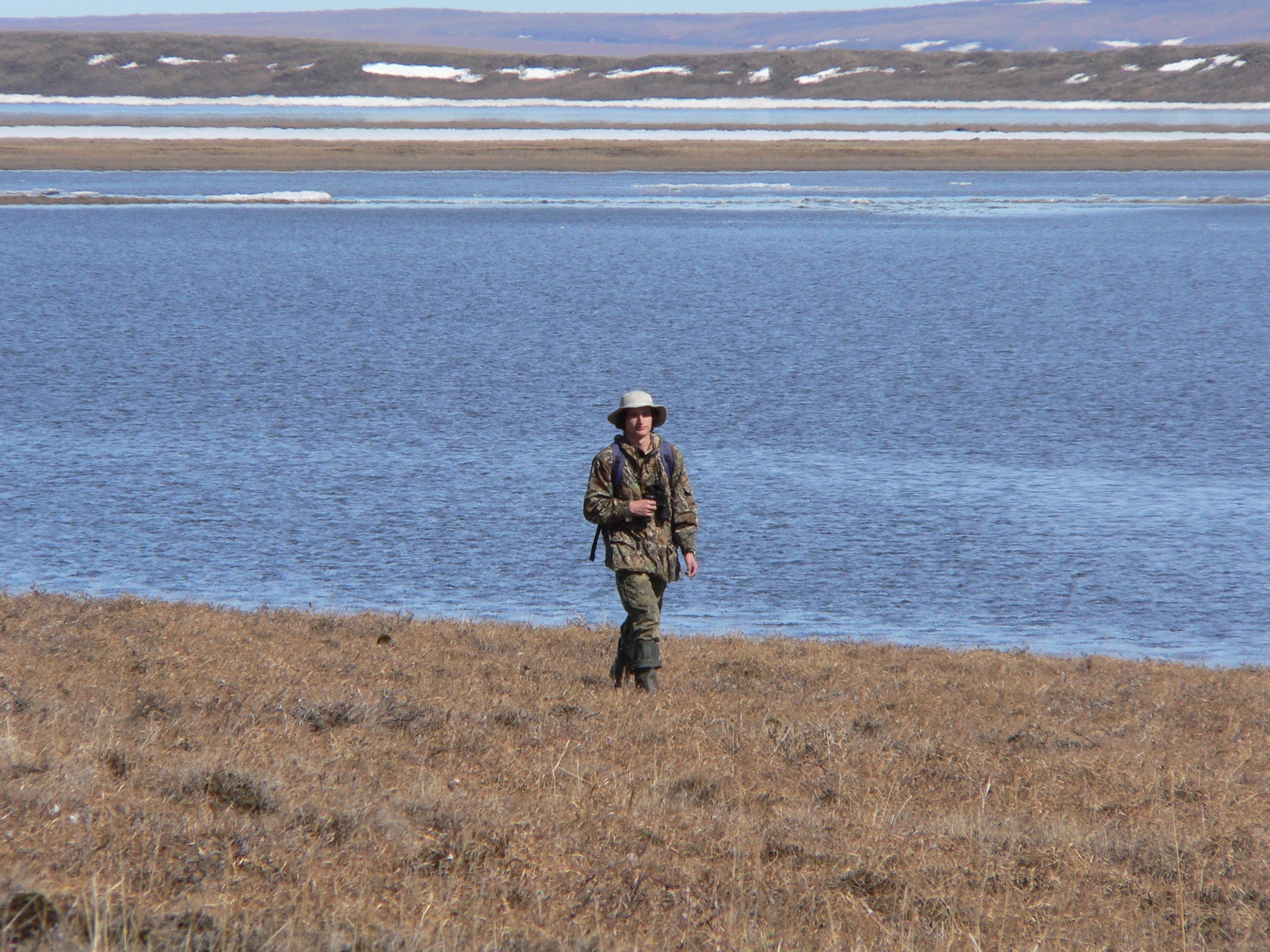 Photo 2. Eldar Rakhimberdiev in search for the first shorebird nests at Lake Taimyr, 23 June 2005 (74°N, 100°E). Photo by Mikhail Soloviev.
