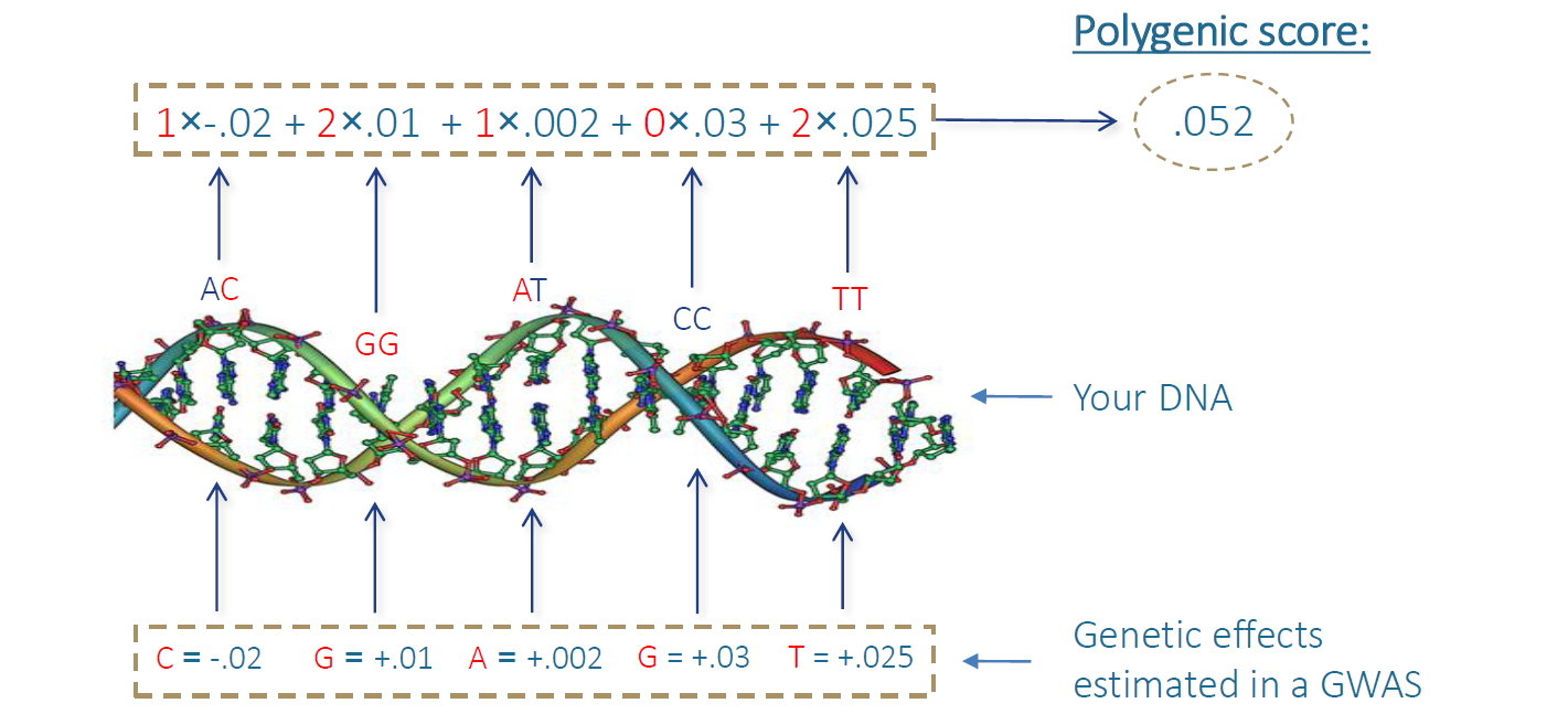 We do not need to understand anything about the biology underlying these genetic associations to use them in practice. If I know which genetic variants you carry, and I know how strong their effect is on a certain heritable outcome, I can improve my estimation of your chance of expressing that heritable outcome without knowing anything about the underlying biological processes. GWAS results are usually made public, which makes it quite easy for anyone to build so-called polygenic scores that can be used to predict someone’s genetic predisposition to heritable traits, without having to understand anything about why exactly they are predictive.