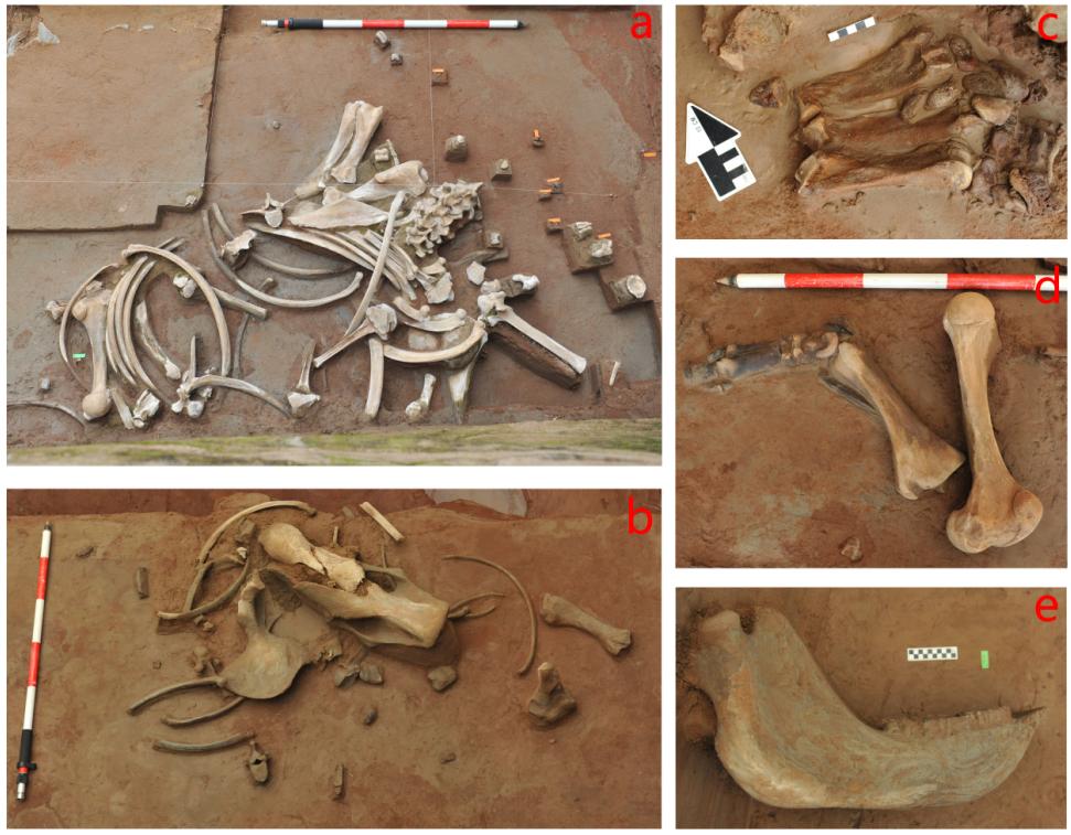 Figure 1. Parts of unearthed woolly rhinoceros remains from Ulanmulun Paleolithic site, Inner Mongolia, Northern China. Credit: Lei Bao