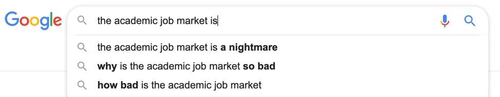 In order to become a professor, you need a PhD.1 It comes as no surprise that PhD programs can be grueling as whip smart and hard-working graduate students stave off imposter syndrome and loneliness, attempting to gulp down new knowledge (often teaching themselves and learning on the fly) while trying to publish their own research amidst other responsibilities (e.g., teaching, mentoring, etc.).2 Adding to these challenges are uncertainties about how to secure an academic job.
