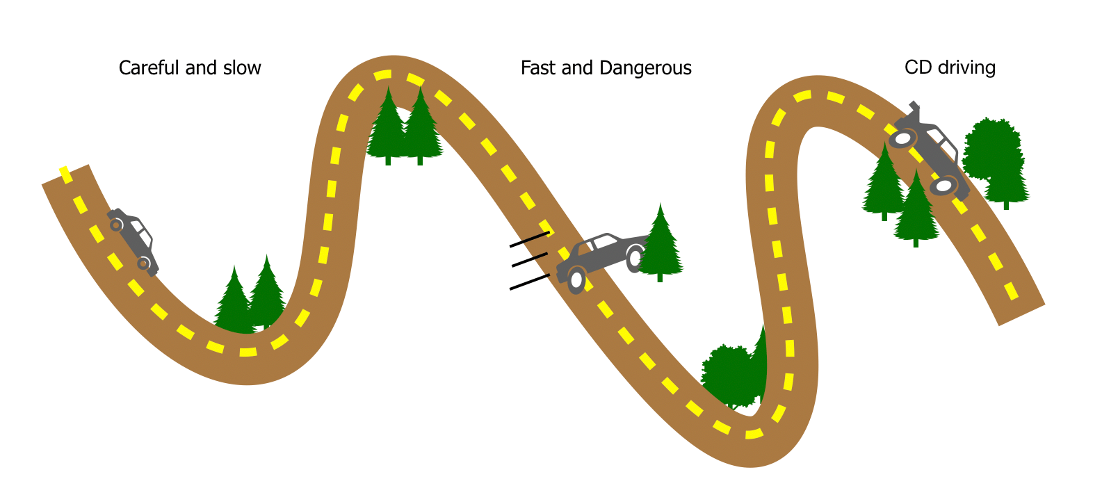 To understand the essence of CD driving, it is helpful to consider a more familiar scenario. Imagine driving a car along a winding road through the mountains, with many sharp curves. In this analogy each point along the road corresponds to a different distribution of mutants in the cellular population (or different quantum states in the original incarnation of the idea). The goal is to get from the start point to the final destination in a short time, but always staying on the chosen road. Veering off-road can be dangerous: for example, you may want to avoid certain mutants along the way that can lead to complications for the patient. The route poses no problems for slow drivers: by gradually accelerating, breaking, and steering, one can reliably guide the car through even the most perilous hairpin. In biological terms, slow driving would be a gradual protocol of changing drug dosage, with the mutant distribution adapting in response, keeping on target throughout. But attempting the same trip at high speeds is risky, since you will lose traction going around sharp turns and swerve off the road. Analogously, simply speeding up the original drug protocol will lead the cell population to stray from the target distribution of mutants. The solution is to figure out a strategy that counteracts the effects of high speeds. For the car this might be adding spoilers or wings to the back, pushing the car downwards and increasing grip during fast turns. Ideally, the spoilers may even dynamically adjust to optimize control on the fly. Similarly, CD driving provides a dynamic correction force in the form of altered dosage or even adding new types of drugs into the mix, with the aim of achieving the desired distribution of mutants at each moment of time.