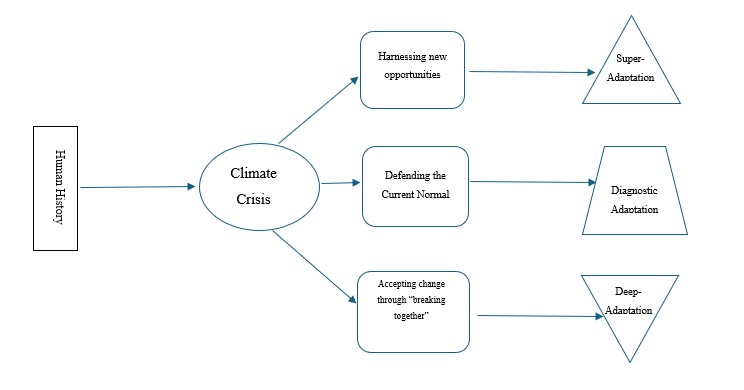 A different kind of “deep adaptation” comes from Jem Bendell. He uses the allegory of Atlas the Titan carrying the weight of a cosmic destiny and gives it an ecological twist. Implicit in the Atlas myth is that humanity needs to strive to thrive. He is not fatalistic about our future. Rather, he recognizes that we will go through a series of crises and “breaking together” towards a new form of grassroots adaptation would be our path to restrained prosperity.