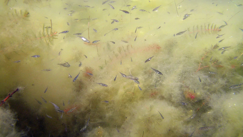 Fig. 3. School of three-spined stickleback (Gasterosteus aculeatus) (Photo: U. Bergström).