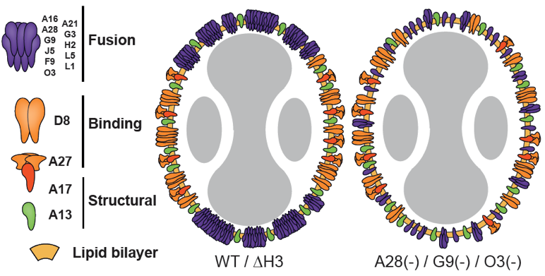 While we could correlate defective fusion with disrupted EFC polarization, up to this point we had only observed this when a component of the EFC was missing. We basically had a “chicken or egg causality dilemma”. We needed a way to disrupt the localization of the EFCs on VACV particles without breaking the fusion machinery itself.